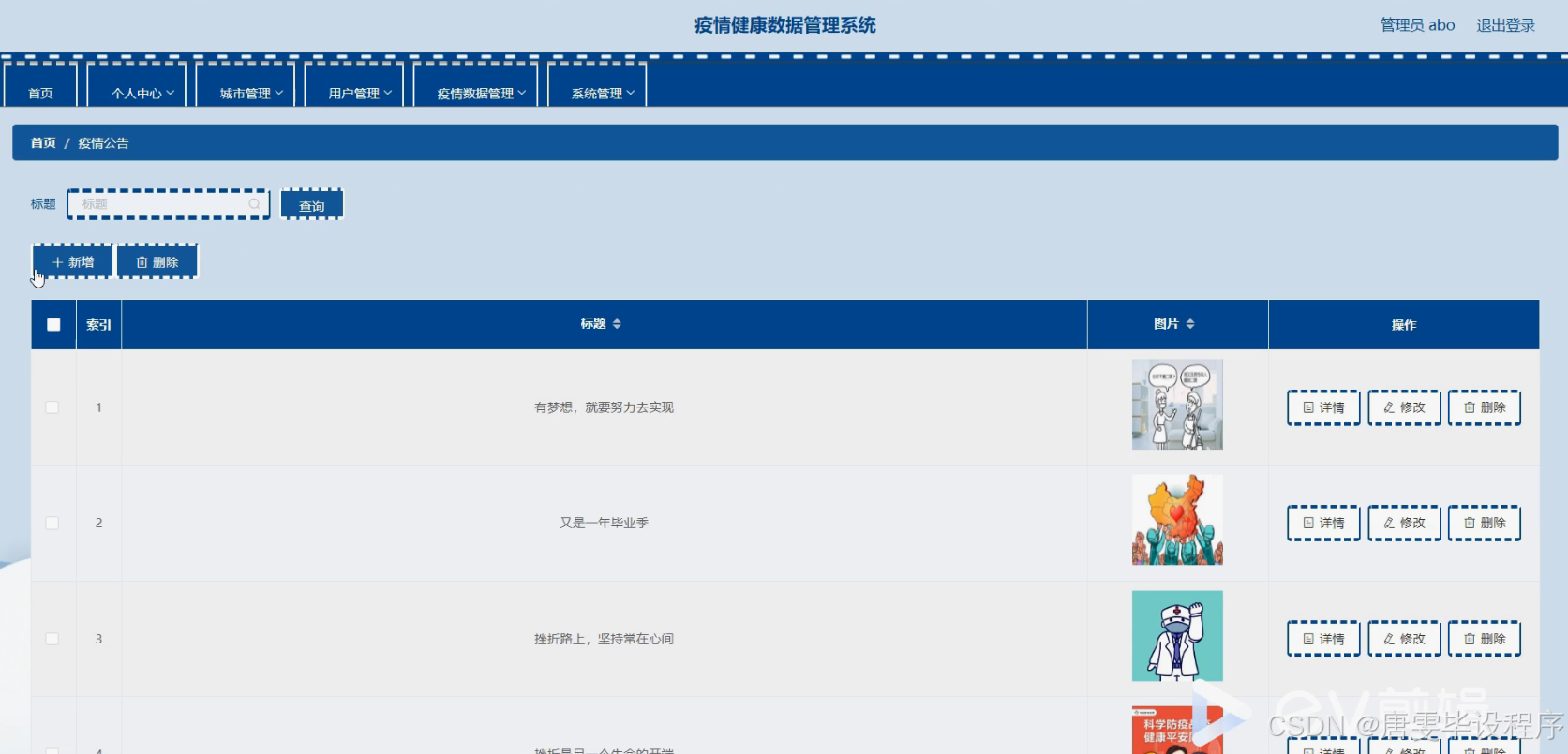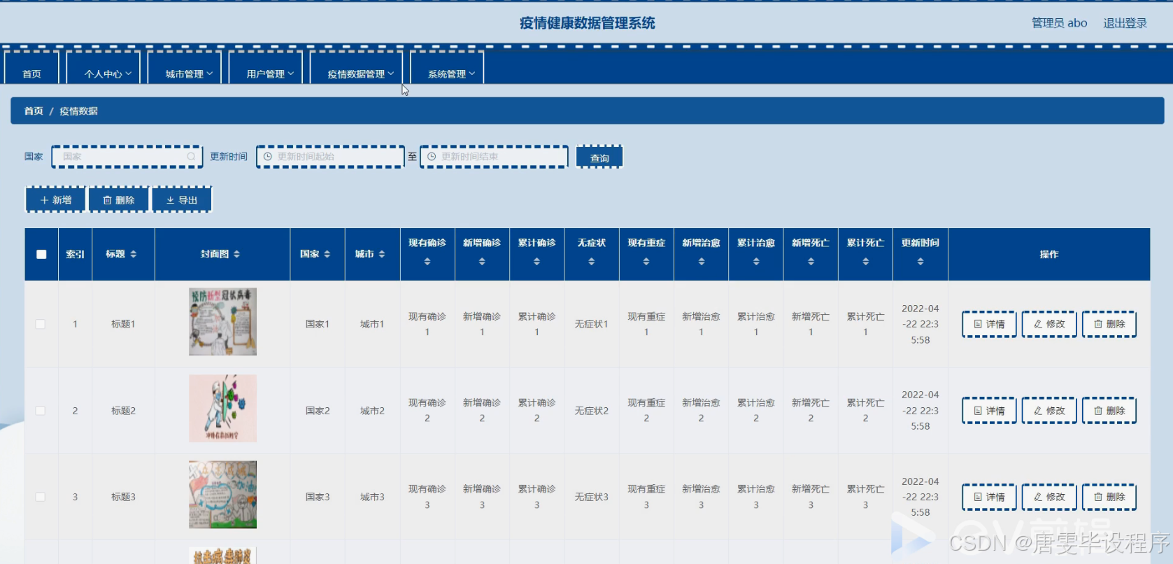 自新冠疫情爆发以来,全球公共卫生体系面临着前所未有的挑战。疫情数据的实时更新、精准追踪与有效管理成为疫情防控的关键。随着信息技术的飞速发展,构建一套高效、准确且安全的疫情健康数据管理系统显得尤为重要。该系统旨在整合来自不同渠道、不同层级的疫情数据,实现数据的快速收集、分析、共享与利用,为政府决策、医疗资源调配、公众健康预警提供科学依据。在当前全球疫情形势依然严峻复杂的背景下,开发这样一套系统不仅是应对疫情的现实需求,也是提升公共卫生应急管理能力的重要举措。