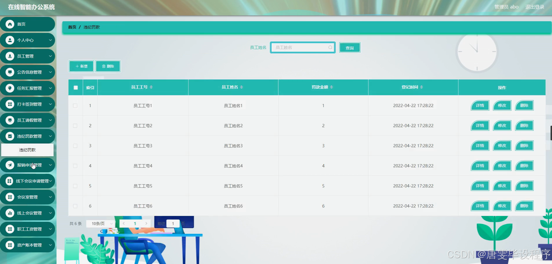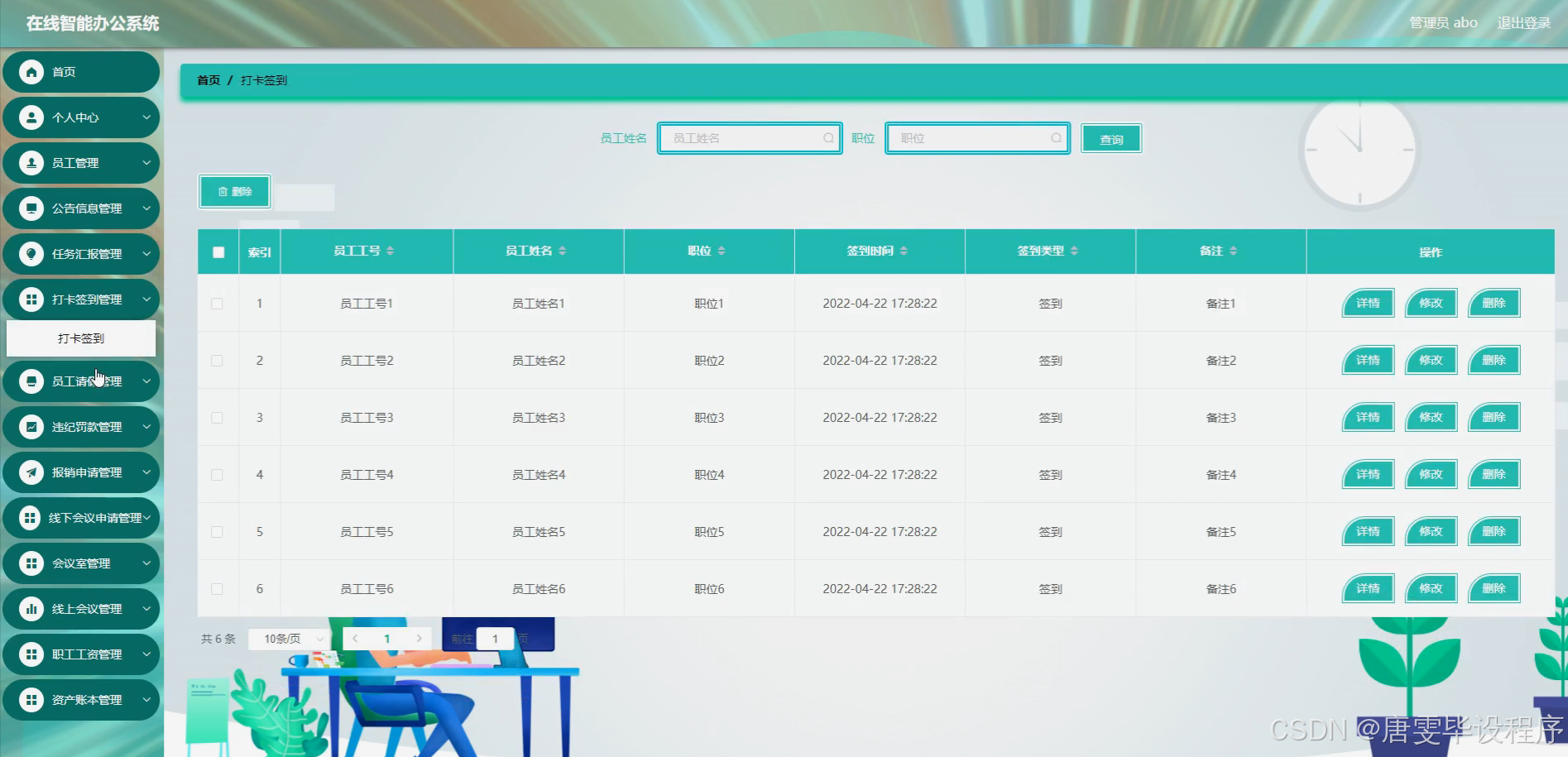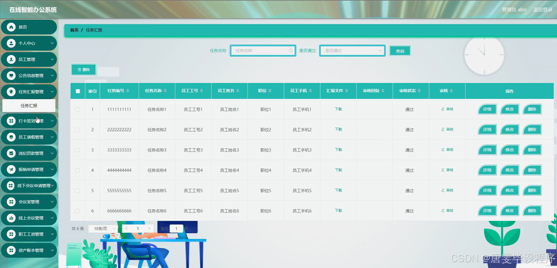 在线智能办公系统的研发对于提升企业的管理水平和运营效率具有重要意义。通过整合公告信息、员工管理、任务汇报等功能模块,该系统能够帮助企业实现信息的集中管理和高效利用,减少信息孤岛现象。同时,打卡签到、员工请假、违纪罚款等功能的引入,有助于规范企业的日常管理,提升员工的工作效率。此外,该系统还能通过数据分析为企业提供决策支持,助力企业实现精细化管理。
