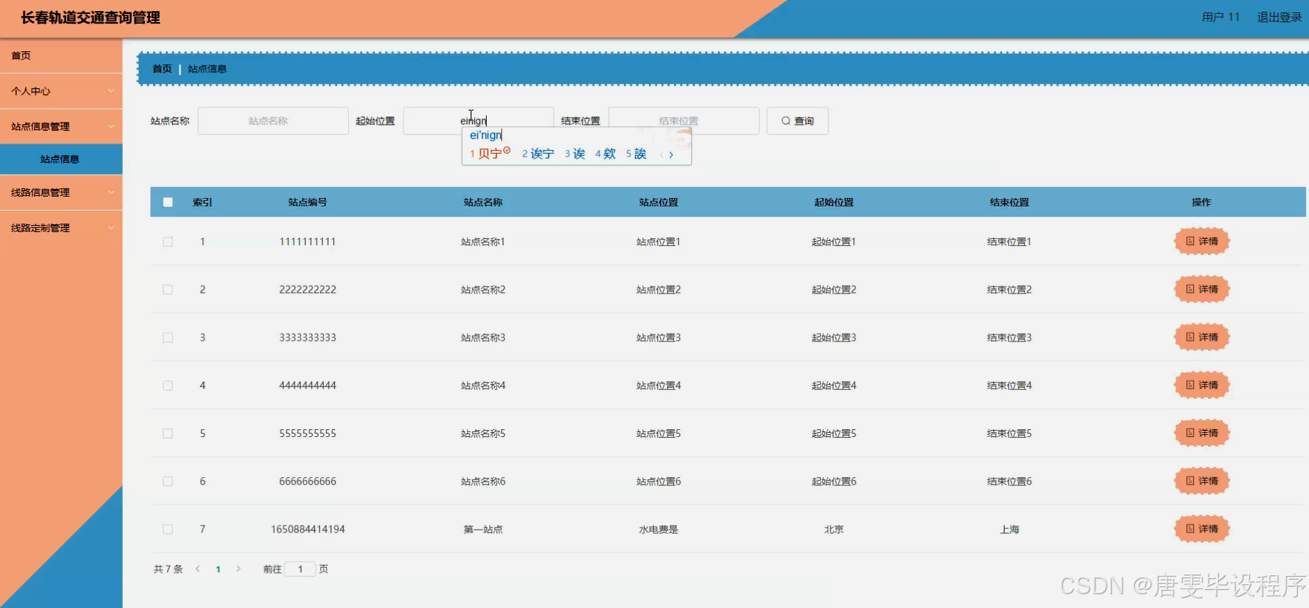 本研究将围绕长春轨道交通查询管理系统的开发展开,具体包括以下几个方面的内容:一是用户模块的设计与开发,包括用户注册、登录、个人信息管理等功能;二是站点信息模块的设计与开发,实现站点信息的查询、展示等功能;三是线路信息模块的设计与开发,实现线路信息的查询、展示、路径规划等功能;四是线路定制模块的设计与开发,允许用户根据自己的出行需求,定制个性化的轨道交通线路。通过这些模块的开发,我们将构建一个功能全面、操作简便的长春轨道交通查询管理系统。