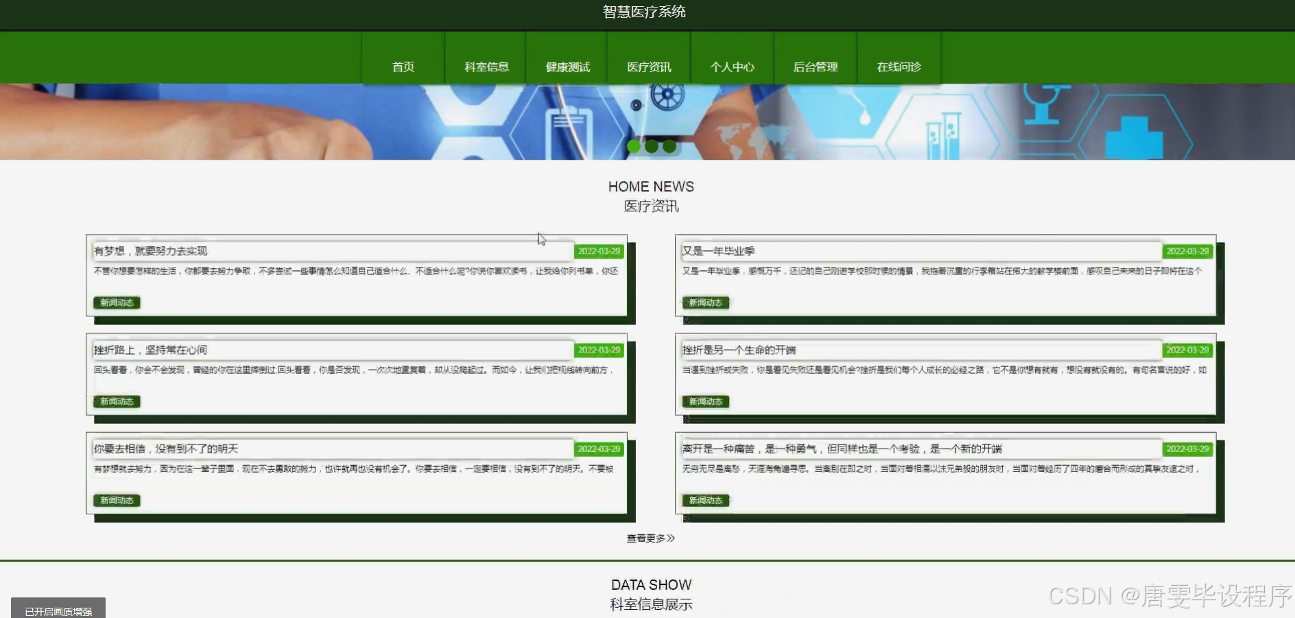 本研究旨在设计并实现一个功能完善的智慧医疗系统,以提升医疗服务的智能化水平。通过该系统,用户可以方便地查看科室信息、预约挂号、查询就诊记录等;医生可以高效地管理患者信息、查看预约情况、进行远程诊疗等;医疗机构可以实现对科室、医生等资源的优化配置和精细化管理。最终,本研究希望通过智慧医疗系统的建设,为患者提供更加便捷、高效的医疗服务,推动医疗行业的可持续发展。