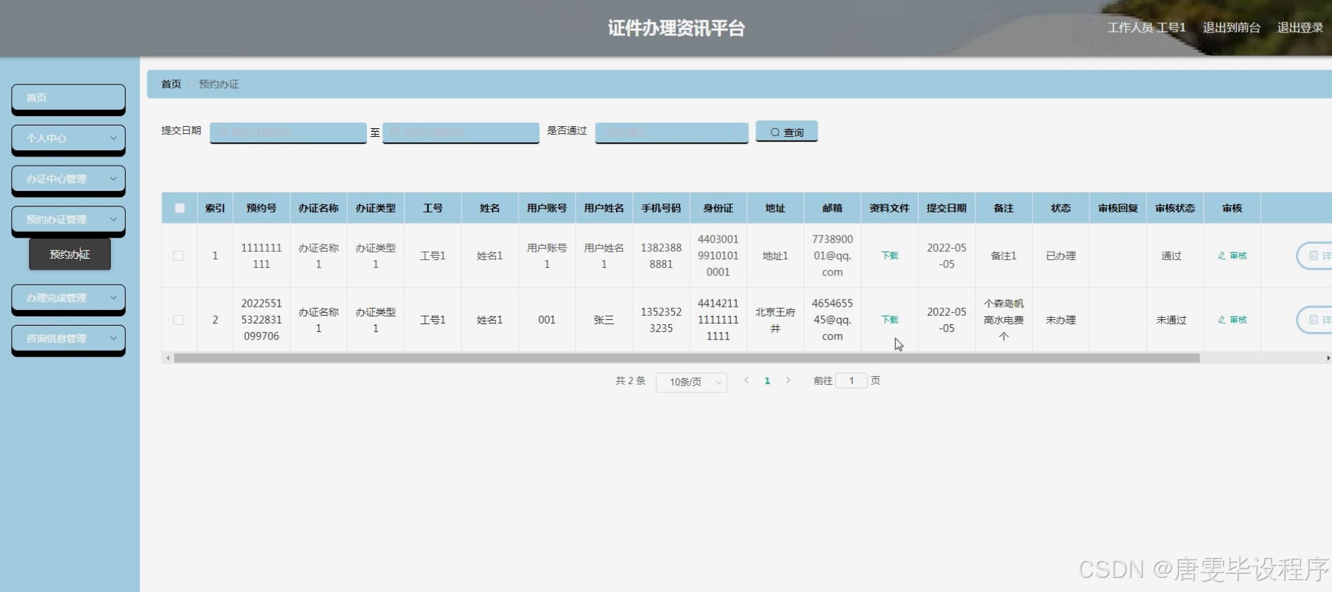 本研究将围绕证件办理资讯平台的核心功能展开,包括用户管理、工作人员管理、办证攻略展示、办证类型选择、办证中心导航、预约办证功能、办理完成通知以及咨询信息回复等。用户管理模块将实现用户注册、登录、个人信息管理等功能;工作人员管理模块则负责工作人员权限分配、任务分配等;办证攻略展示模块将提供各类证件办理的详细步骤和注意事项;办证类型选择模块将为用户提供清晰的证件分类和选择界面;办证中心导航模块将展示各办证中心的地理位置、联系方式等信息;预约办证功能将允许用户在线预约办证时间,避免排队等待;办理完成通知模块将通过短信或邮件方式通知用户证件办理结果;咨询信息回复模块则为用户提供实时在线咨询和解答服务。通过这些功能模块的实现,平台将为用户提供一个全面、便捷、高效的证件办理服务体验。