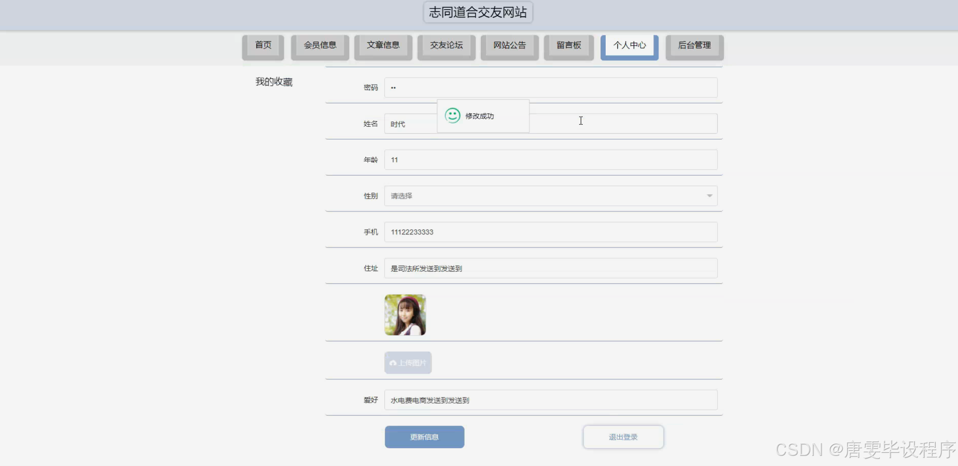 在志同道合交友网站的研究与设计中,我们将重点围绕以下系统功能展开: