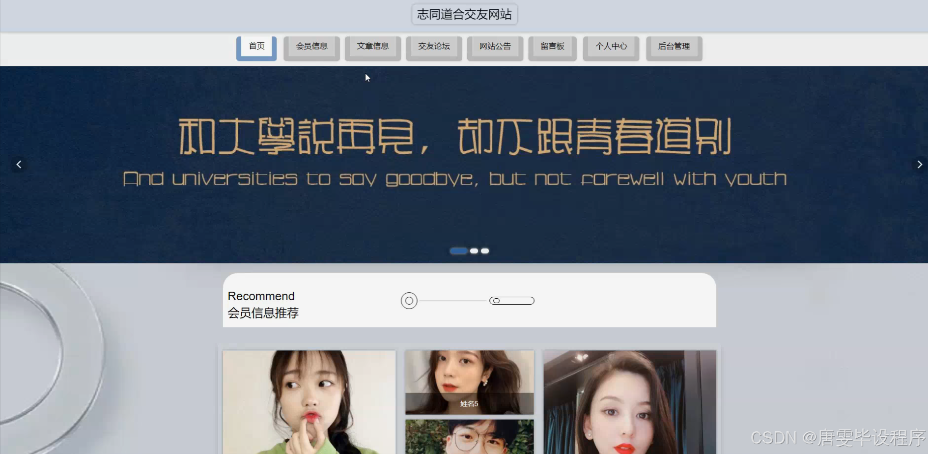 通过本研究,我们预期能够取得以下成果:设计一个功能完善、安全可靠的志同道合交友网站;提供丰富多样的内容浏览和互动交流体验;满足用户多样化的交友需求;推动网络社交平台的不断创新和优化。同时,我们也将为未来的网络社交研究提供有益的参考和借鉴。