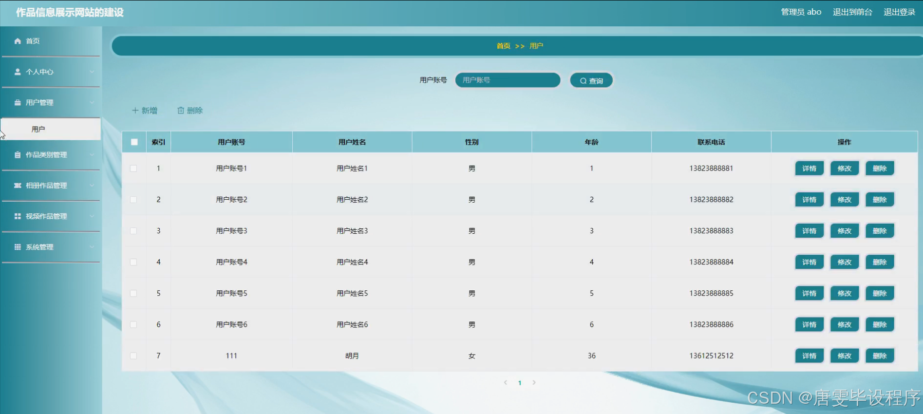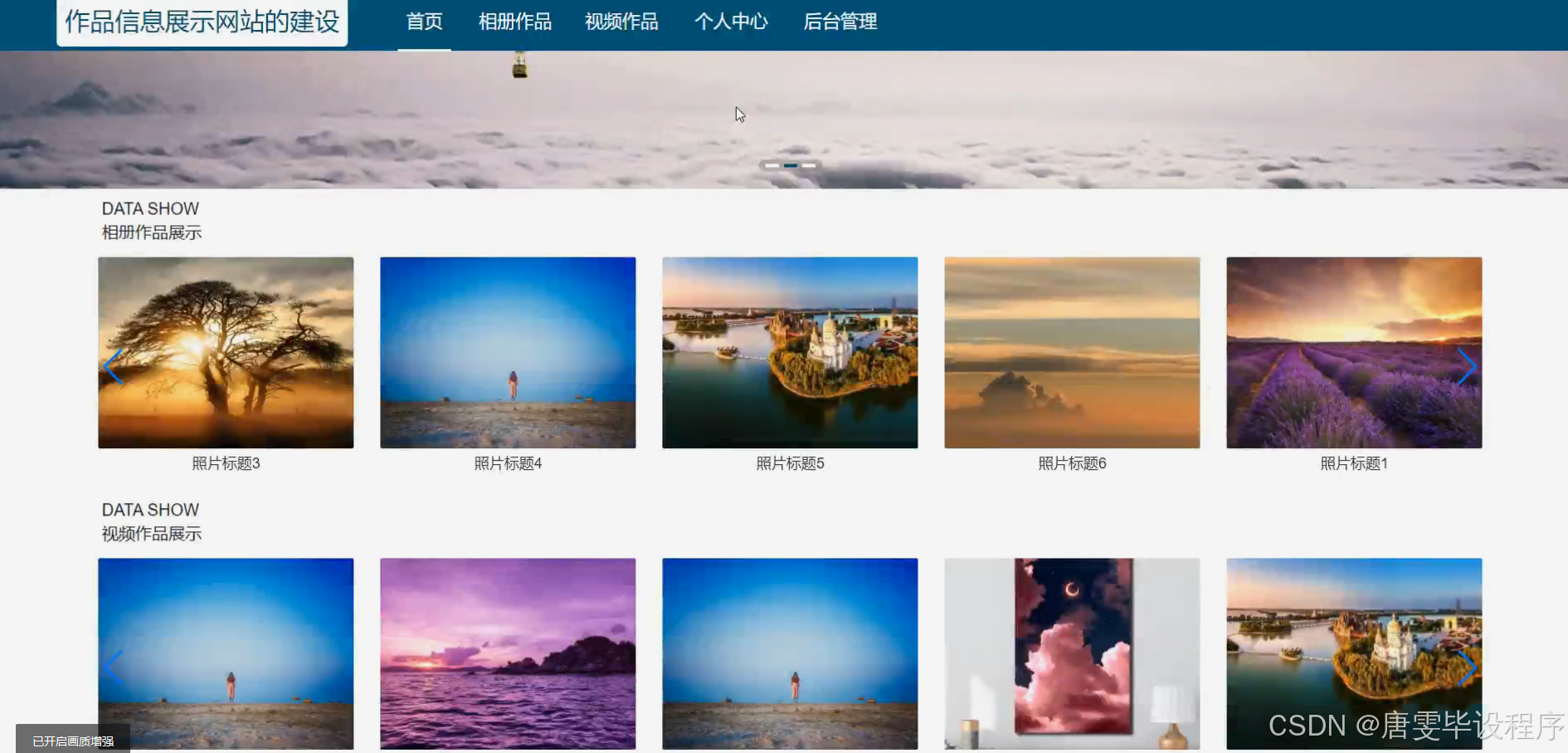 本毕业设计的目的是构建一个功能完善的作品信息展示网站,旨在为用户提供一个高效、便捷的作品展示与分享平台。通过该网站,用户可以轻松浏览、搜索和欣赏各类作品,包括相册作品、视频作品、文档作品及压缩包作品等。同时,网站还具备用户管理、相册类别和视频分类等功能,以满足不同用户的个性化需求。通过本项目的实施,旨在提升作品展示的数字化水平,推动创意产业的繁荣发展。