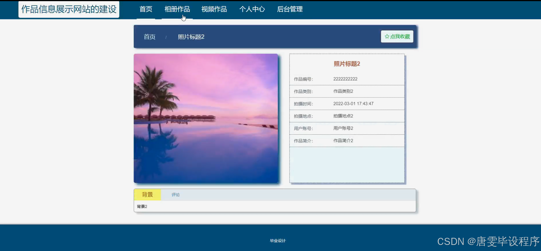 作品信息展示网站的建设对于推动创意产业的发展具有重要意义。它不仅能够为创作者提供一个展示才华、分享创意的舞台,还能够为观众提供一个欣赏作品、了解创作背景及过程的窗口。通过网站,创作者可以便捷地管理自己的作品,包括上传、分类、编辑等操作,极大地节省了时间和精力。同时,网站还可以集成社交功能,如评论、点赞、分享等,增强用户的参与感和归属感。此外,作品信息展示网站还能够为行业内的交流与合作提供便利,促进创意资源的共享与整合。