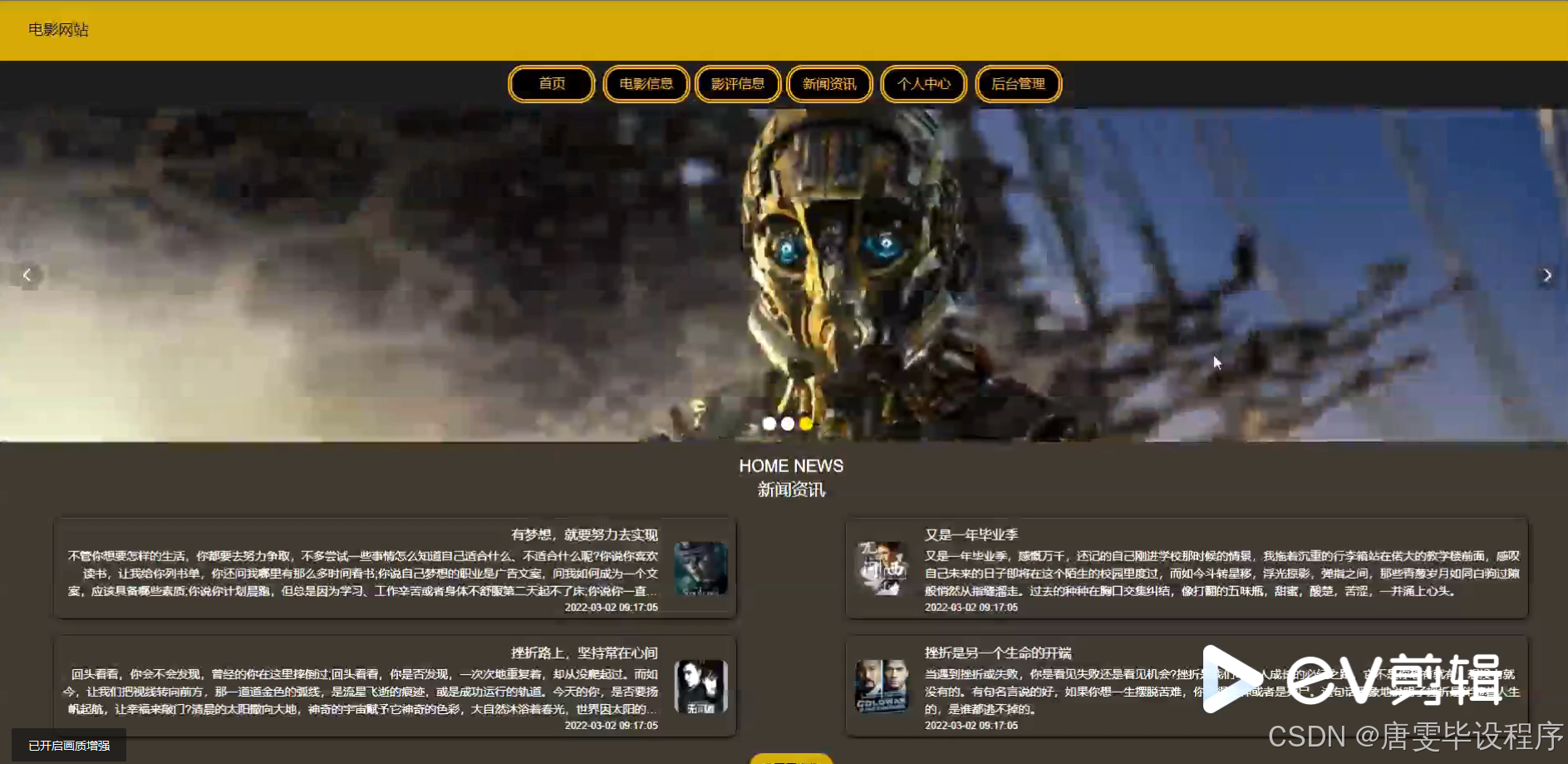 随着互联网技术的飞速发展,网络娱乐已成为人们日常生活中不可或缺的一部分,其中电影作为一种重要的文化娱乐形式,深受广大观众的喜爱。传统的电影观看方式逐渐从线下影院向线上流媒体平台转移,电影网站应运而生,成为连接电影制作方与观众的重要桥梁。近年来,电影市场的繁荣和用户需求的多样化,对电影网站的功能和服务提出了更高要求。如何构建一个集电影信息查询、在线观看、互动交流等功能于一体的综合性电影网站,成为当前研究的热点。