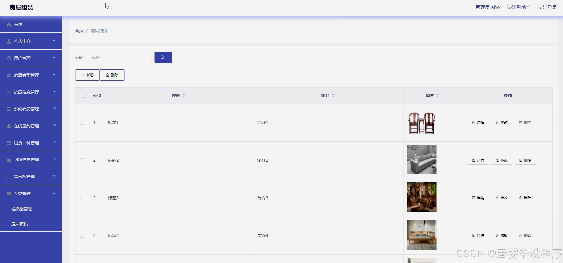 本研究的目的是设计并实现一个功能完善的房屋租赁系统,该系统旨在通过数字化手段,整合房屋租赁市场的各类资源,为用户提供便捷、安全、高效的租赁服务。具体而言,系统将涵盖用户管理、房屋类型分类、详细房屋信息展示、预约看房预约、在线签约流程、租赁评价系统以及求租信息发布等功能模块,以满足不同用户群体的多样化需求,提升整体租赁体验,同时促进租赁市场的规范化发展。