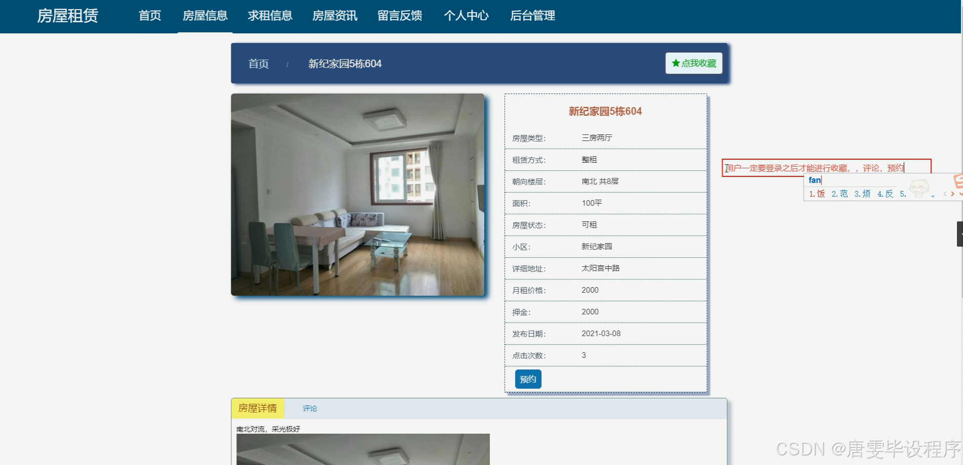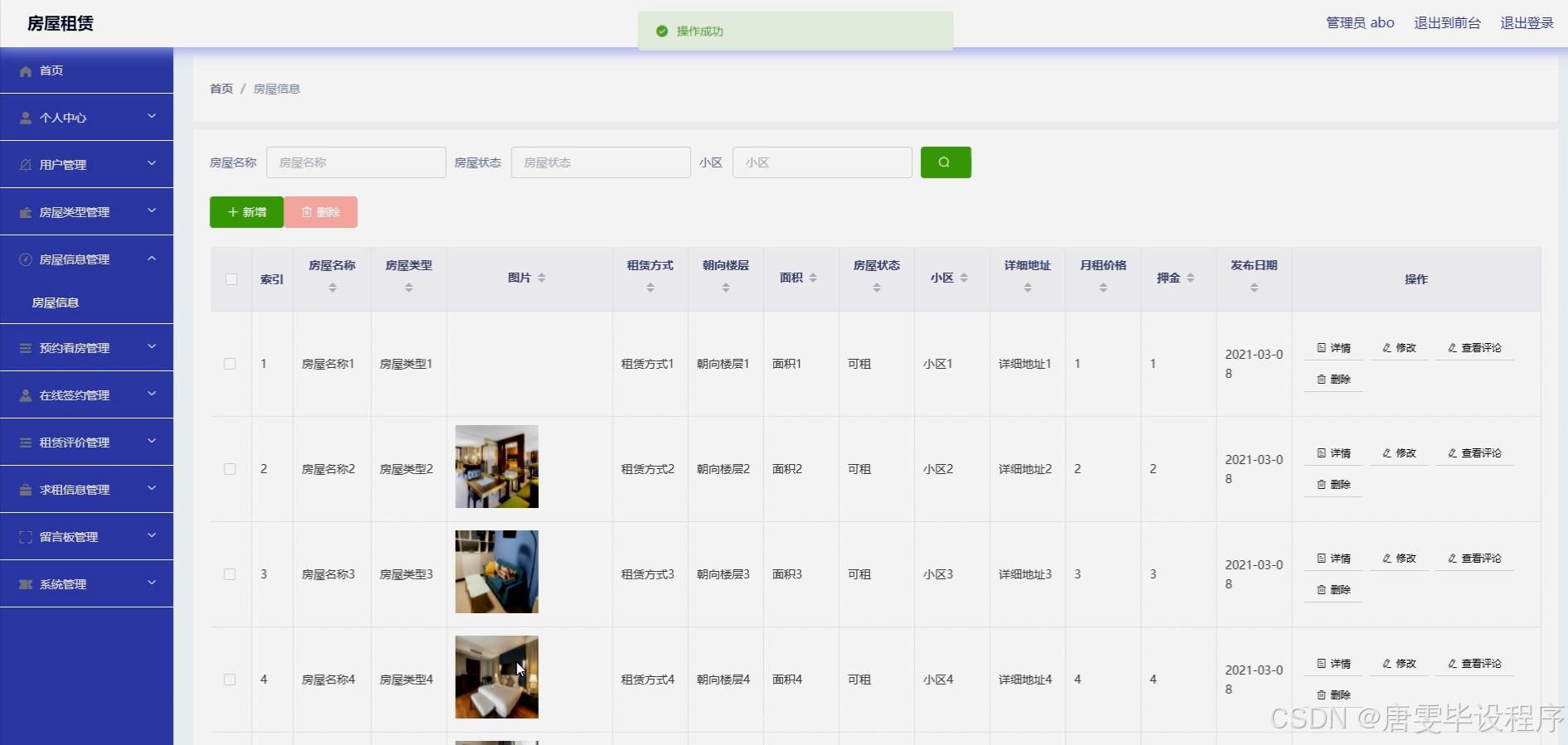 在当今社会,随着城市化进程的加速和人口流动性的增强,房屋租赁市场日益繁荣,成为满足人们居住需求的重要途径。尤其是在大城市中,由于高昂的购房成本和不断变化的工作与生活环境,越来越多的人选择租房作为解决居住问题的首选方式。然而,传统的房屋租赁流程繁琐,信息不透明,租客与房东之间往往存在信息不对称的问题,导致租赁效率低下,纠纷频发。因此,开发一个集信息展示、预约看房、在线签约及租赁评价等功能于一体的房屋租赁系统,旨在简化租赁流程,提升租赁市场的透明度和效率,具有重要的现实意义。