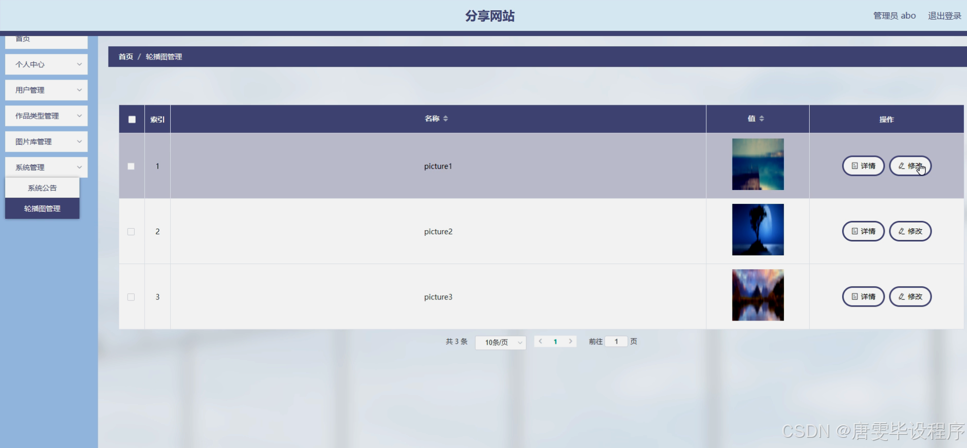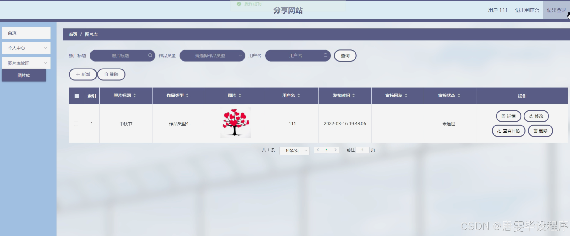 本研究旨在设计并实现一个功能完善的分享网站,以满足用户对于作品展示、交流互动和资源分享的需求。通过深入研究用户需求和行为习惯,我们力求打造一个界面友好、操作便捷、内容丰富的在线平台。该网站将涵盖用户管理、作品类型分类以及图片库管理等多个系统功能,旨在提升用户体验,促进信息的有效传播和共享,进一步推动网络文化的繁荣发展。