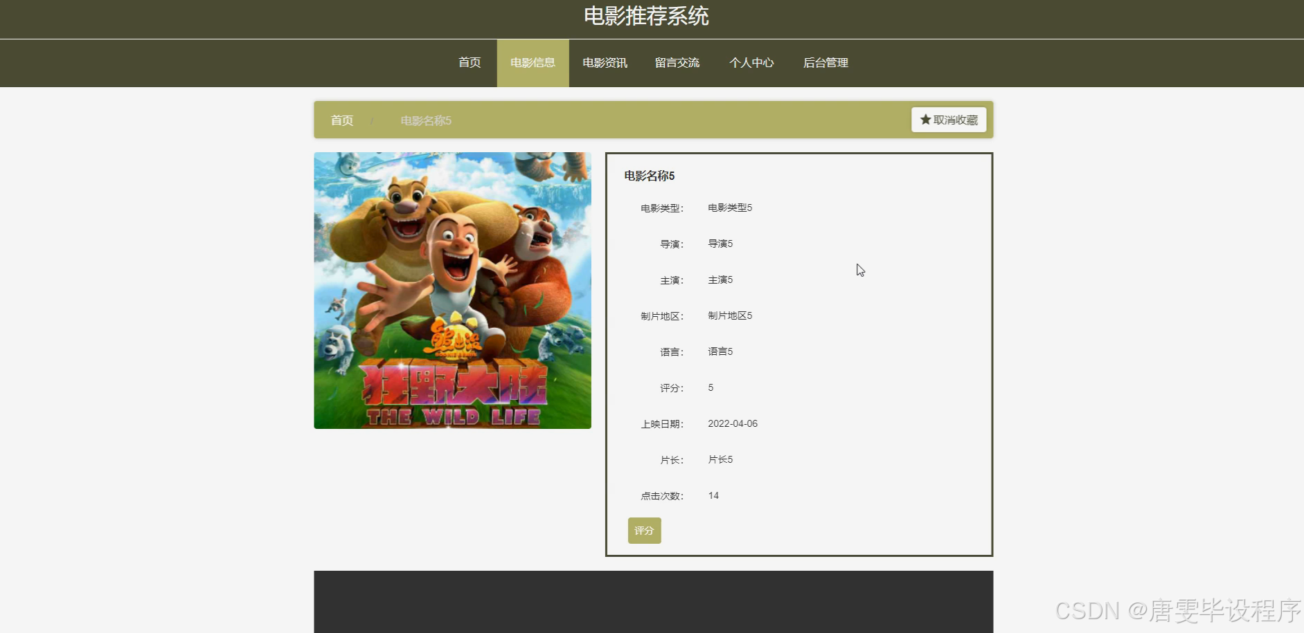 本研究的电影推荐系统主要包含以下功能:用户信息管理、电影类型分类、电影评分机制以及电影信息展示。用户信息管理模块负责收集并存储用户的观影历史、偏好等信息,为推荐算法提供数据支持。电影类型分类模块根据电影的题材、风格等因素进行划分,便于用户按类型筛选电影。电影评分机制允许用户对观看过的电影进行评分,反映用户的真实喜好,为推荐算法提供反馈。电影信息展示模块则负责展示电影的详细信息,包括片名、导演、演员、剧情简介、海报等,为用户提供全面的电影资讯。通过这些功能的协同作用,系统能够为用户提供个性化的电影推荐服务。