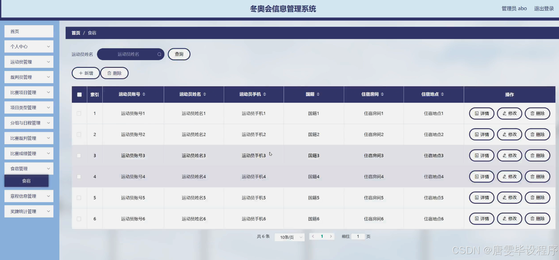冬奥会信息管理系统的研究不仅对于提高赛事组织效率具有重要意义,还能够有效促进赛事的公平、公正与透明。通过系统化管理,可以确保运动员信息的准确性,避免误判与遗漏;同时,系统的自动化处理能够大幅提升比赛成绩与奖牌统计的时效性,为观众、媒体及参赛者提供及时、准确的信息服务。此外,该系统还能够优化资源分配,如食宿管理与日程安排,从而提升整体赛事体验与满意度。