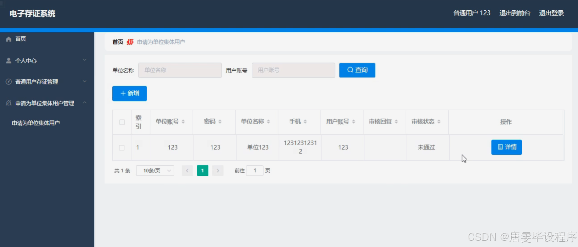 本研究旨在设计并实现一套功能完善的电子存证系统,以满足不同用户群体的存证需求。通过构建包括普通用户、单位集体用户在内的多元化用户体系,以及涵盖普通用户存证、存证广场浏览、单位存证管理、单位集体用户申请等功能模块,旨在打造一个高效、安全、易用的电子存证平台。该系统的目标是实现电子数据的快速存证、便捷查询与高效利用,为数字时代的法律实践提供强有力的技术支持。
