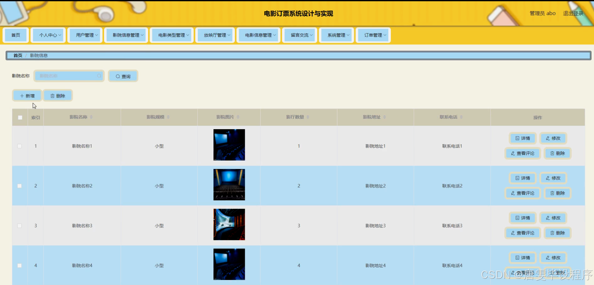 首先,系统需具备用户管理功能,包括用户注册、登录、个人信息管理以及观影历史记录等,确保用户能够安全、便捷地使用系统服务。其次,影院信息管理是系统的核心之一,需涵盖影院基本信息、地理位置、放映设施等详细资料,为用户提供全面的影院选择依据。在电影类型管理方面,系统将根据电影题材、风格等因素进行分类,便于用户快速找到感兴趣的电影。电影信息管理则涉及电影详情、预告片、评分、评论等内容,为用户提供全面的电影资讯。最后,放映厅管理功能需支持影院实时更新放映计划、座位分布以及票价信息,确保用户能够准确了解并预订心仪场次。通过这些功能的集成与优化,电影订票系统将为用户提供一个高效、便捷、个性化的在线购票平台。