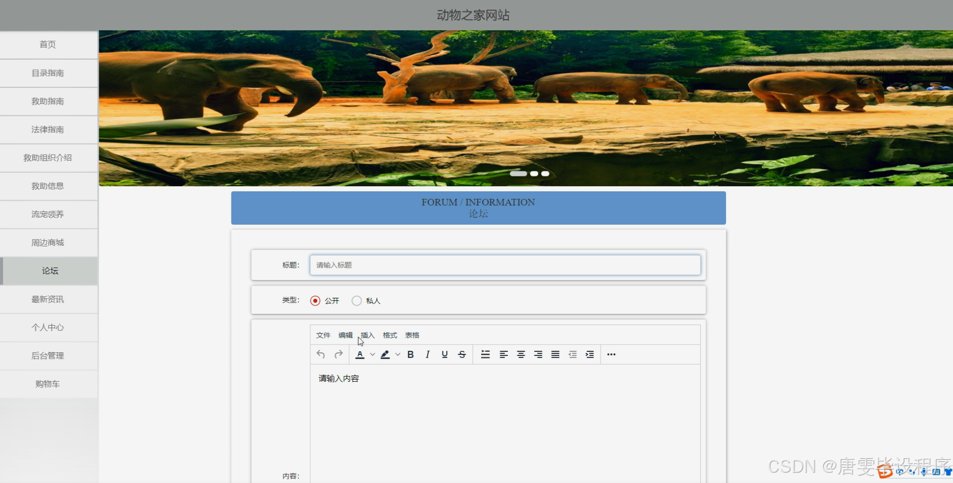在当今社会,随着人们生活水平的提高和动物保护意识的增强,越来越多的人开始关注流浪动物的生存状况,并积极参与到动物救助与保护行动中来。然而,信息不对称和资源分散成为制约动物救助工作高效开展的关键因素。许多有志于动物保护的个人和组织在寻找救助资源、发布救助信息以及推广领养活动等方面面临诸多困难。因此,构建一个集信息共享、资源整合、互动交流为一体的综合性动物保护平台显得尤为重要。动物之家网站应运而生,旨在通过数字化手段,搭建起动物救助组织与公众之间的桥梁,促进信息的有效流通,提升动物救助工作的效率与透明度。