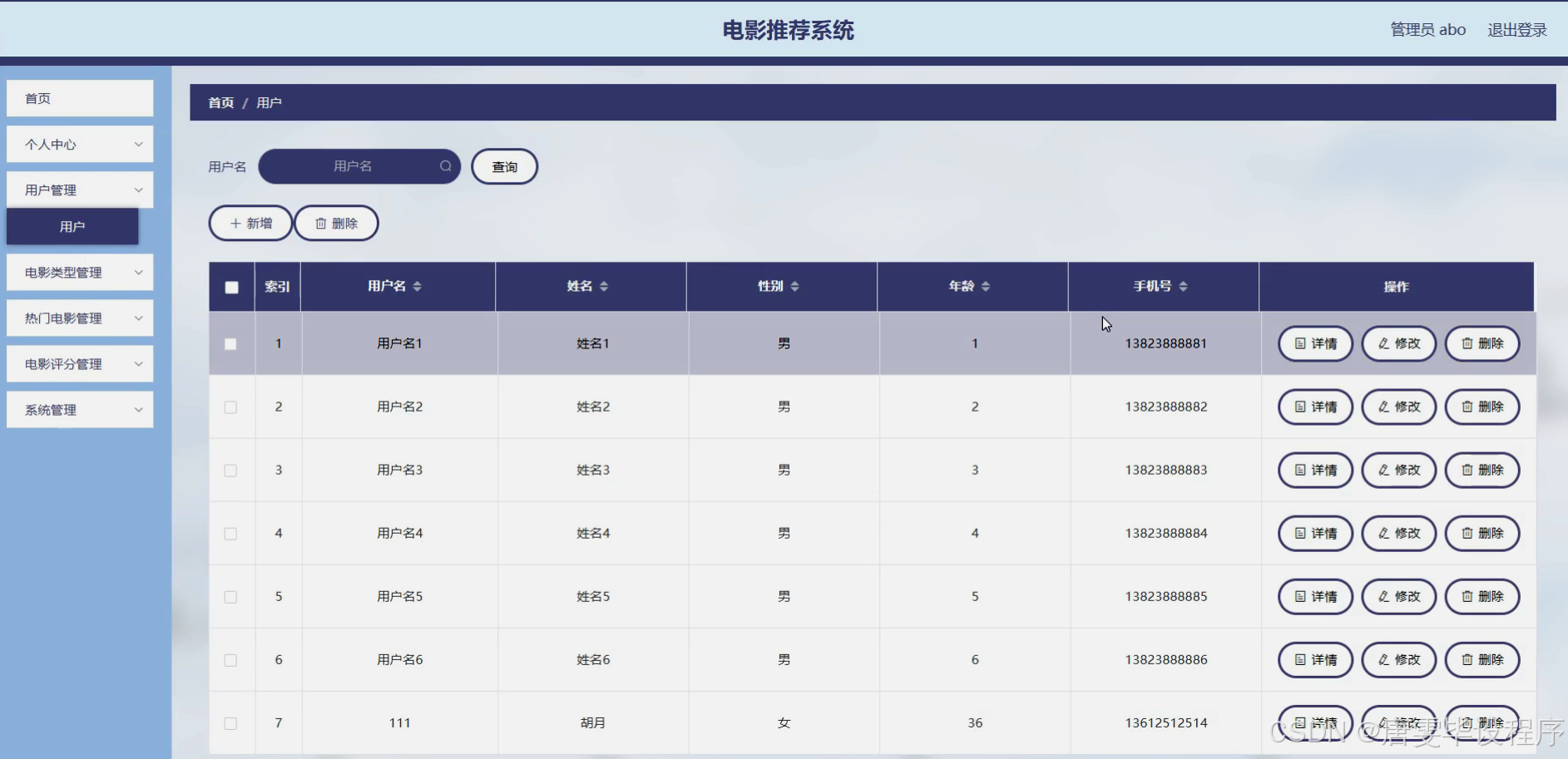 本研究内容围绕电影推荐系统的核心功能展开,主要包括用户管理、电影类型分类、热门电影推荐以及电影评分分析四大模块。在用户管理方面,系统将建立用户档案,记录用户的观影历史、偏好设置等信息,为个性化推荐提供基础数据。电影类型分类模块则通过对电影内容的分析,将电影划分为不同的类型,便于用户根据兴趣筛选。热门电影推荐模块基于实时数据,动态展示当前最受欢迎的电影,引导用户关注热门内容。电影评分分析模块则收集用户对电影的评分反馈,运用机器学习算法评估电影质量,为推荐算法提供重要参考。通过这些功能的综合应用,系统将为用户提供全面、精准的个性化电影推荐服务。