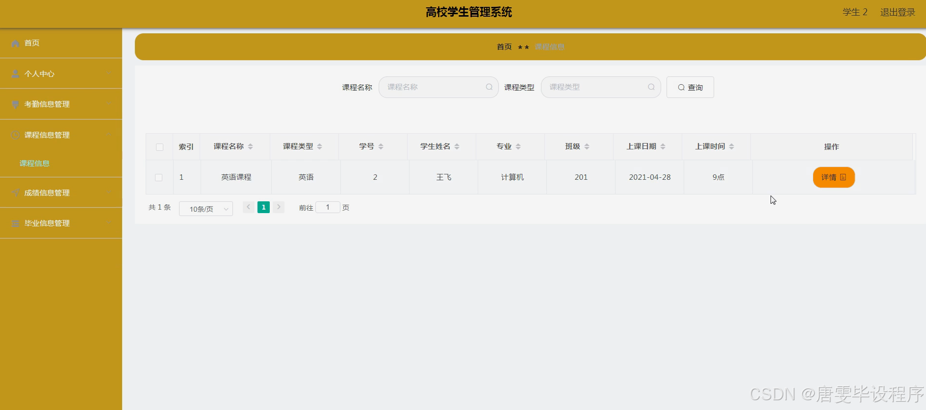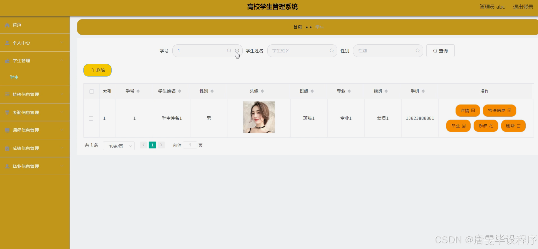 高校学生管理系统的研究与实践,对于推动高校教育信息化建设、提升管理水平、优化教育资源配置具有重要意义。一方面,通过系统集成学生基本信息、特殊信息、考勤信息、课程信息、成绩信息、毕业信息及教师信息等核心功能,可以实现数据的集中管理和高效利用,为高校管理层提供决策支持。另一方面,系统能够简化管理流程,减轻管理人员工作负担,提高管理效率和服务质量。此外,系统的智能化、个性化设计还能更好地满足学生需求,提升用户体验,促进教育公平和质量的双重提升。