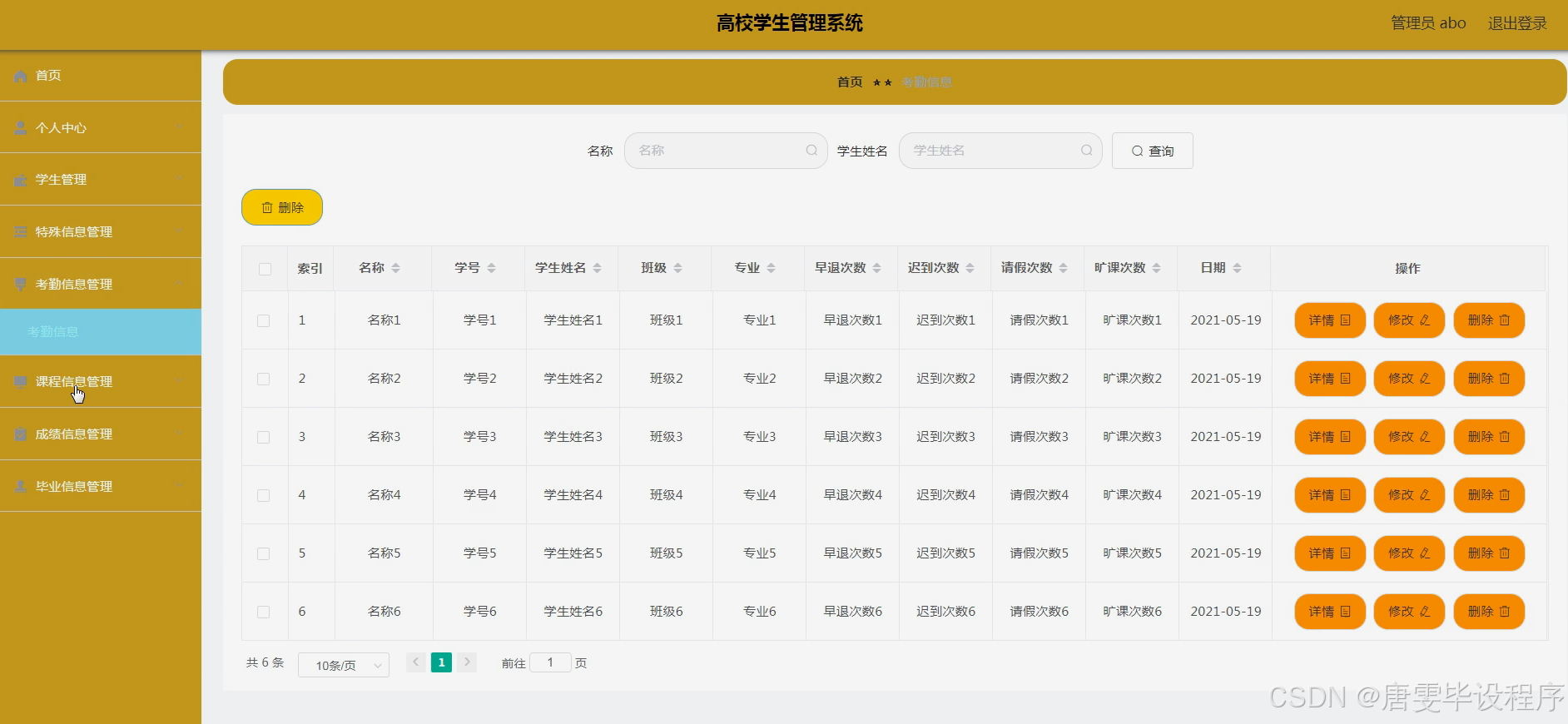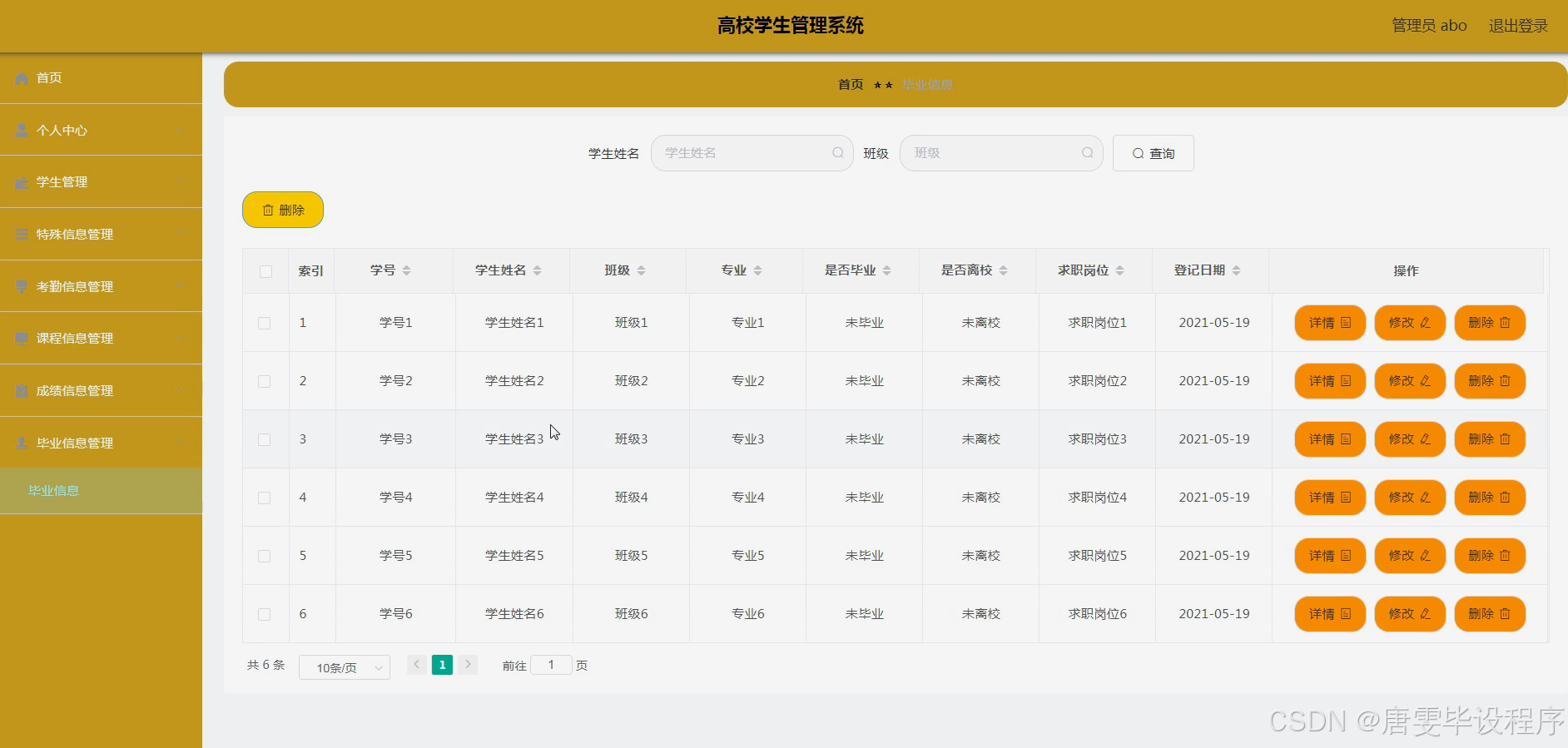 本研究旨在设计并实现一套功能全面、操作简便、数据互通的高校学生管理系统,以解决现有系统中存在的问题,提升高校管理水平和服务质量。通过深入分析高校学生管理的实际需求,结合现代信息技术手段,构建一套集学生信息管理、考勤管理、课程管理、成绩管理、毕业管理以及教师信息管理于一体的综合系统。该系统旨在实现数据的实时更新、共享与利用,为高校管理层提供准确、及时的数据支持,同时为学生提供更加便捷、个性化的服务体验。