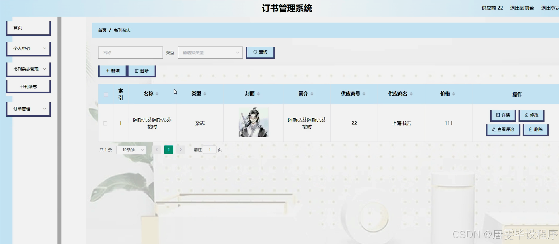 随着信息技术的飞速发展和数字化时代的到来,图书馆、书店以及各类出版机构的订书流程逐渐从传统的手工操作转向自动化管理。传统的订书方式存在信息更新不及时、库存管理混乱、订单处理效率低下等问题,已难以满足现代业务需求。因此,开发一个高效、便捷的订书管理系统显得尤为重要。该系统旨在通过整合用户信息、供应商资源、书刊杂志类型等关键要素,实现订书流程的数字化、智能化,提高管理效率和服务质量,以适应市场需求的变化。