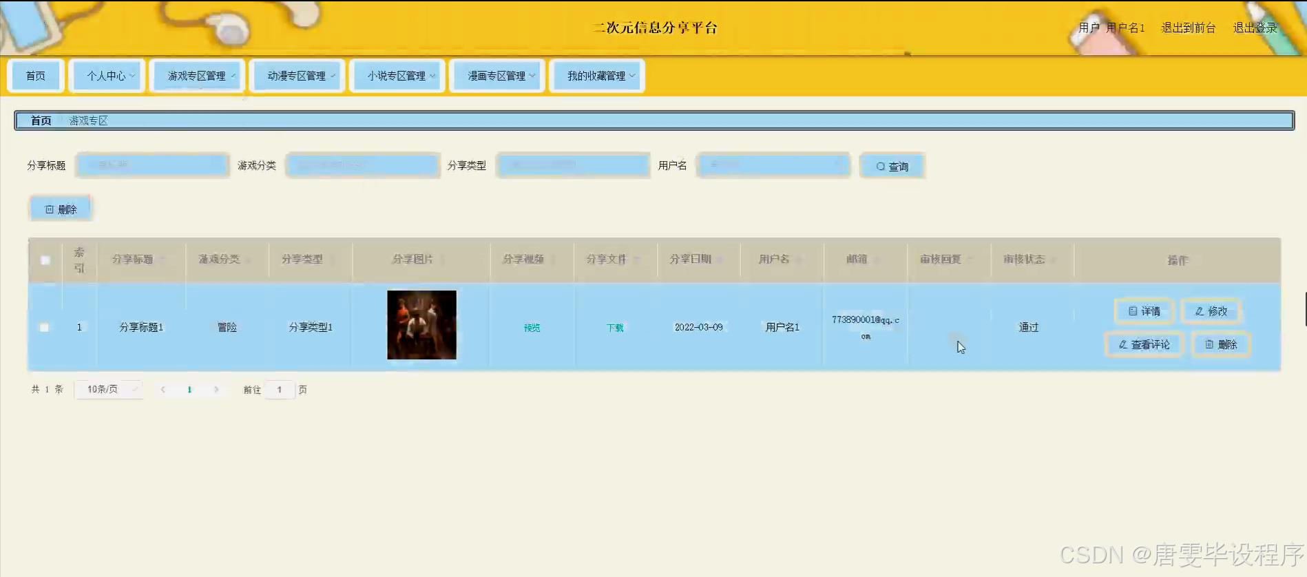 本研究的核心内容将围绕二次元信息分享平台的系统设计与开发展开。具体而言,将包括用户系统的设计与实现,确保用户注册、登录、个人信息管理等功能的安全与便捷;分享类型的设计,支持文本、图片、视频等多种形式的分享;游戏专区的构建,提供游戏资讯、攻略、评测等内容;动漫专区、小说专区和漫画专区的开发,分别满足用户对动漫观看、小说阅读和漫画浏览的需求。通过这些功能模块的有机结合,形成一个完整、高效的二次元信息分享平台。