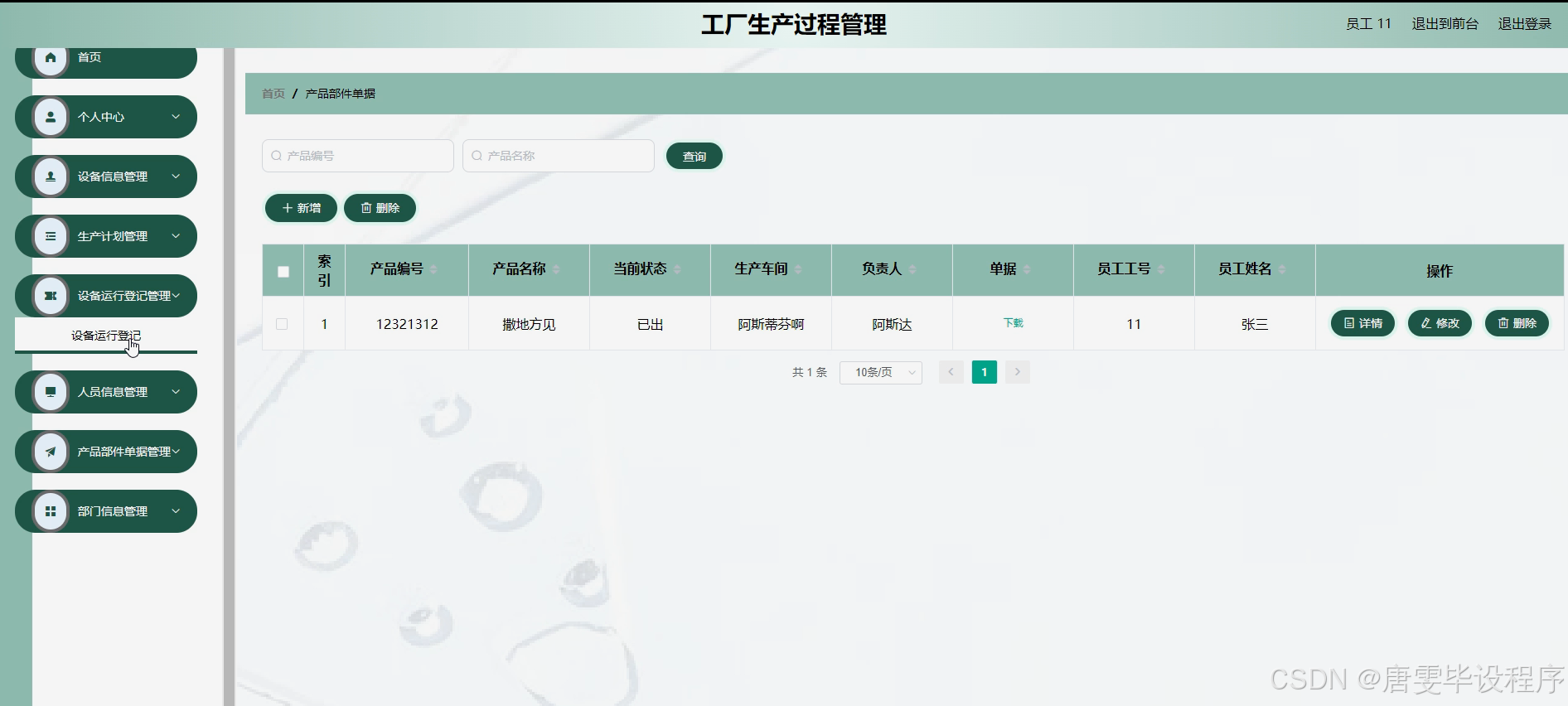 此外,人员信息管理模块将实现员工考勤、绩效管理及培训记录等功能,有助于提升员工的工作效率和满意度。产品部件单据管理模块则用于记录产品的部件构成、采购信息及库存情况等,为生产成本的核算和控制提供支持。