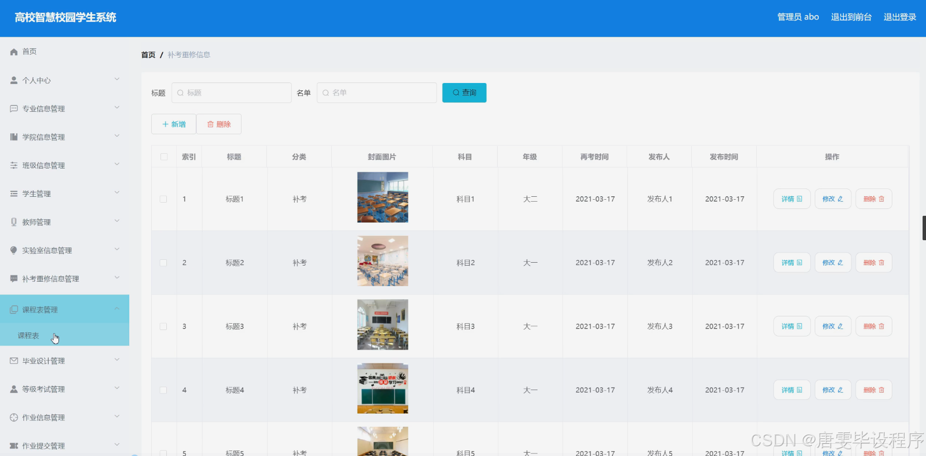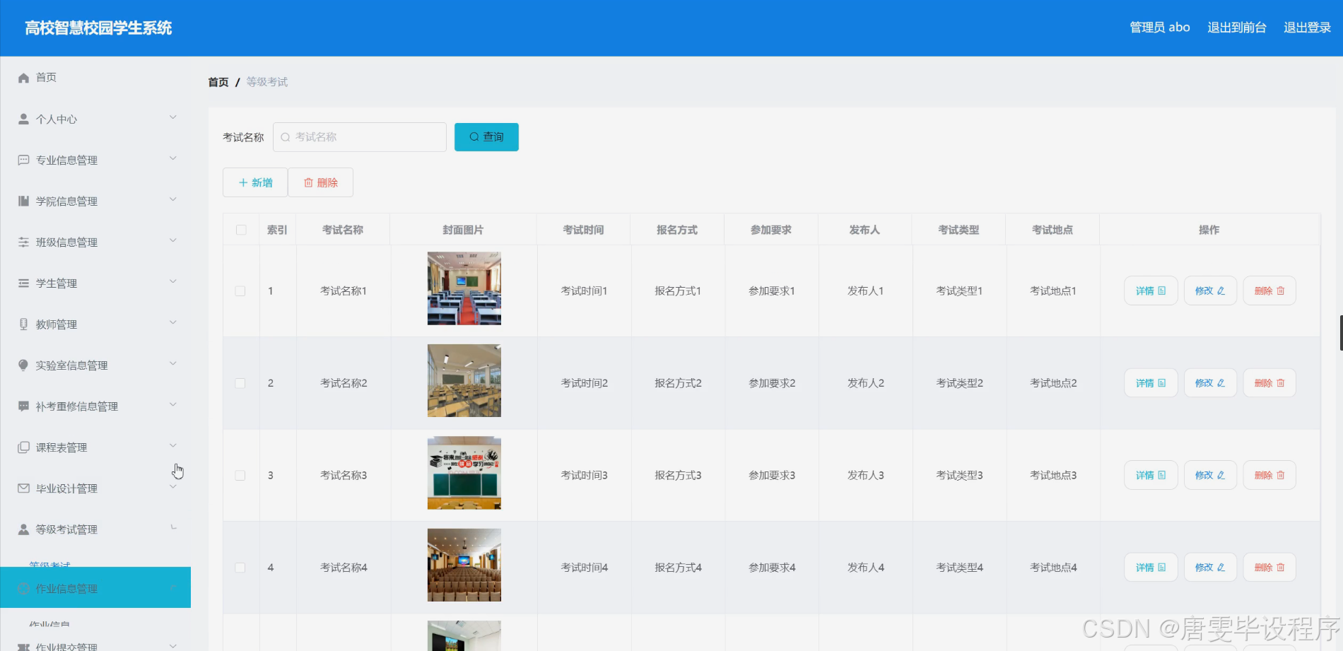 本研究将围绕高校智慧校园学生系统的设计与实现展开,系统功能包括但不限于学生信息管理、专业信息查询、教师信息管理、实验室信息查询、补考重修管理、课程表查询、毕业设计管理、学院信息查询、等级考试管理、班级信息管理、作业信息发布与提交、作业批改反馈、学生评价与教师评价等。具体而言,系统需实现学生个人信息的录入、修改与查询功能,确保信息的准确性和时效性;提供全面的课程表查询服务,方便学生合理安排学习时间;建立作业管理系统,支持作业的在线发布、提交与批改,提高教学效率;设置学生与教师互评机制,促进教学质量的持续改进。此外,系统还需整合各类教学资源,如实验室信息、等级考试资料等,为学生提供丰富的学习资源。通过这些功能的实现,构建一个高效、便捷、互动的智慧校园学生系统。