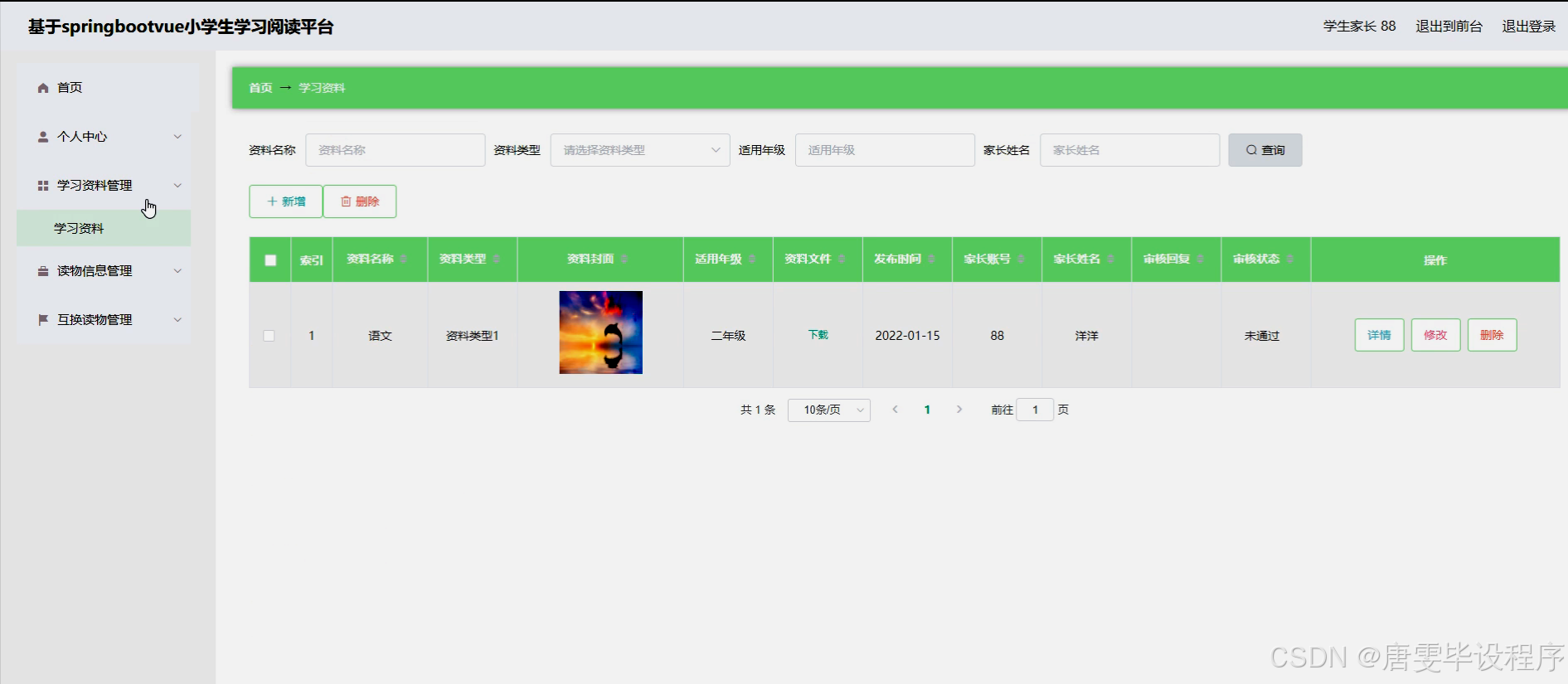 本研究旨在设计并实现一个小学生学习阅读平台,旨在通过智能化、个性化的服务,提升小学生的阅读兴趣和阅读能力。平台将围绕小学生的实际需求,构建包括学生、学生家长、资料类型、学习资料、读物类型、读物信息等在内的系统化功能,实现学习资源的有效整合和精准推送。同时,平台还将提供互换读物的功能,鼓励学生之间的阅读分享和交流,进一步拓宽其阅读视野和社交圈子。
