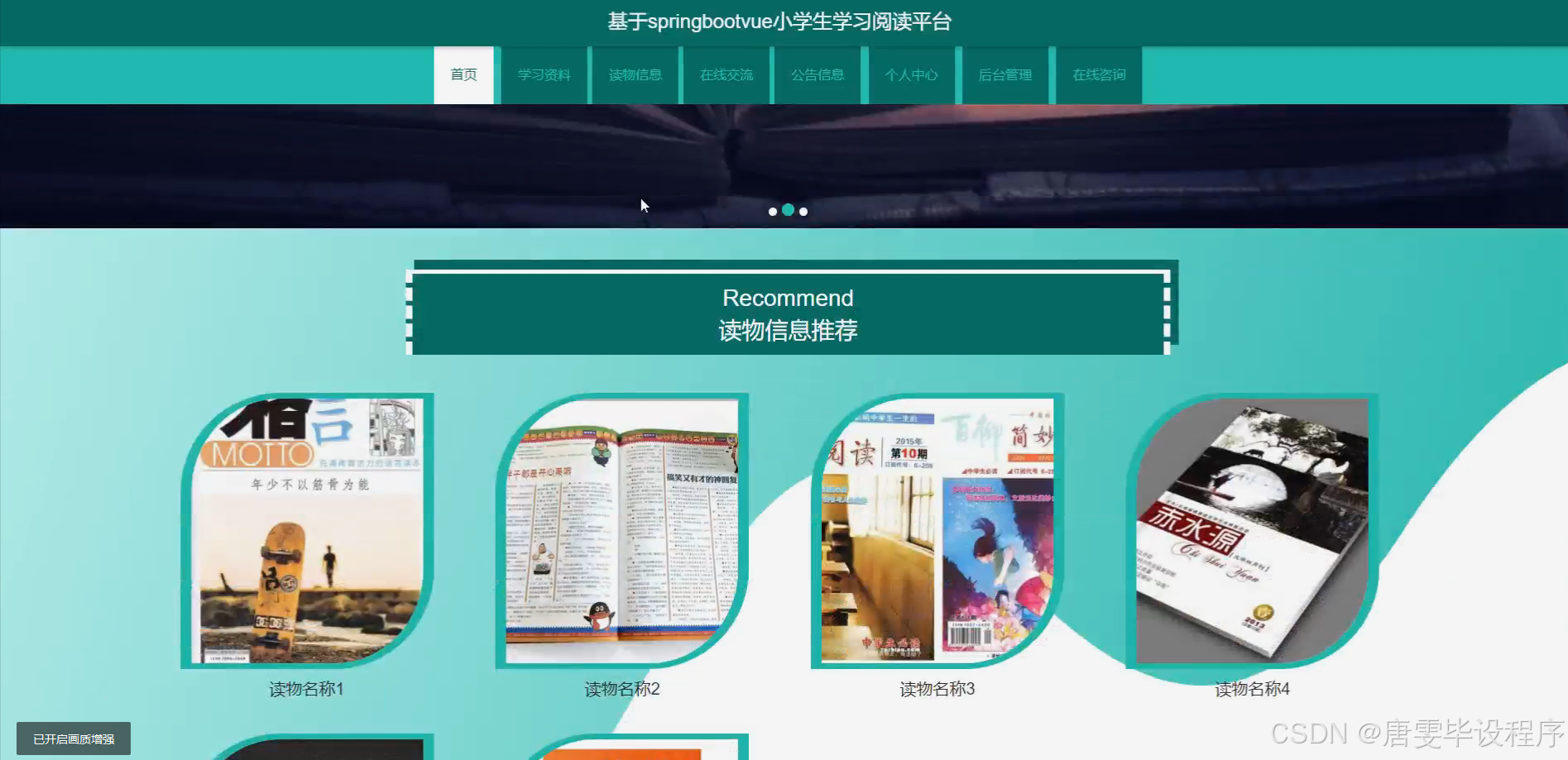 小学生学习阅读平台的研究内容主要涵盖以下几个方面:一是平台用户角色的划分与功能设计,包括小学生用户、学生家长用户以及管理员用户等,不同角色具有不同的权限和功能需求;二是学习资料和读物的整合与管理,平台将收集并分类整理各类适合小学生阅读的资料,如故事书、科普读物、绘本等,同时提供读物信息的详细展示和搜索功能;三是智能化推荐系统的构建,通过分析用户的行为数据和偏好信息,为用户推荐符合其兴趣和学习需求的读物;四是互换读物功能的实现,鼓励用户之间进行读物的交换和分享,增加平台的互动性和趣味性;五是平台的安全性和稳定性保障,确保用户数据的安全以及平台的稳定运行。