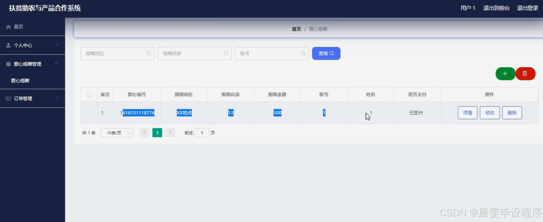 本研究将围绕扶贫助农与产品合作系统的功能需求展开,具体包括用户管理、店家及店铺管理、商品管理、商品分类与生产地分类、爱心捐赠功能、贫困店家申请与信息管理、扶贫政策展示、爱心箱管理以及退货申请处理等。在系统设计过程中,将充分考虑用户需求和市场变化,确保系统的实用性和可扩展性。同时,还将对系统的安全性、稳定性和易用性进行深入研究,以提高系统的整体性能和用户体验。