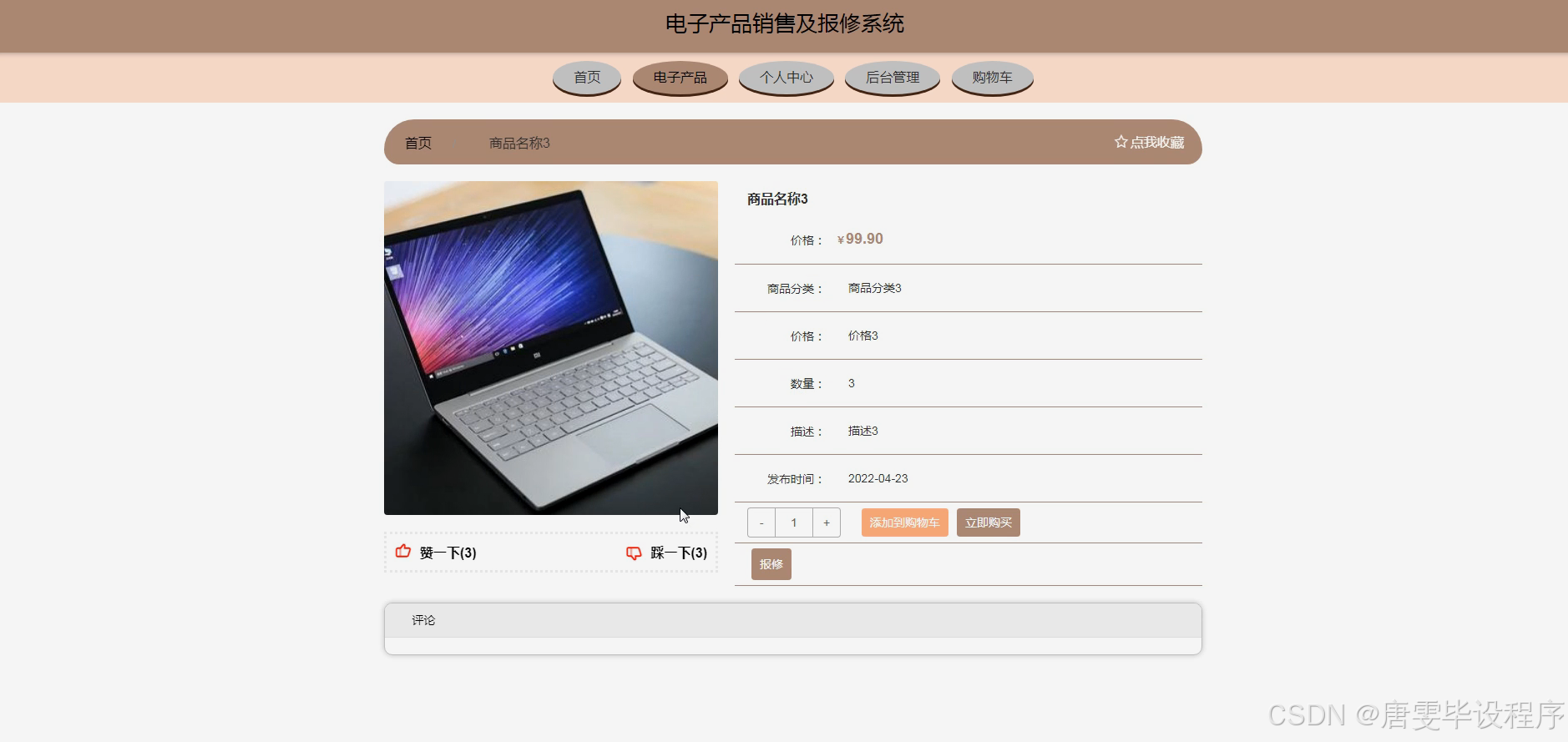 本研究将围绕电子产品销售及报修系统的核心功能展开,具体包括用户管理、电子产品信息管理、商品分类管理以及电子产品报修管理等模块。用户管理模块将实现用户的注册、登录、信息修改等功能,确保系统的安全性和用户信息的准确性。电子产品信息管理模块将涵盖电子产品的展示、库存查询、价格设置等功能,为用户提供丰富的产品信息和便捷的购物体验。商品分类管理模块将根据电子产品的特性和市场需求,进行科学合理的分类管理,方便用户快速定位所需产品。电子产品报修管理模块则将实现报修申请的提交、审核、派工、维修进度跟踪以及维修结果反馈等功能,确保用户能够及时获得高质量的售后服务。通过这些功能模块的设计与实现,系统将全面满足电子产品销售及售后服务的业务需求。