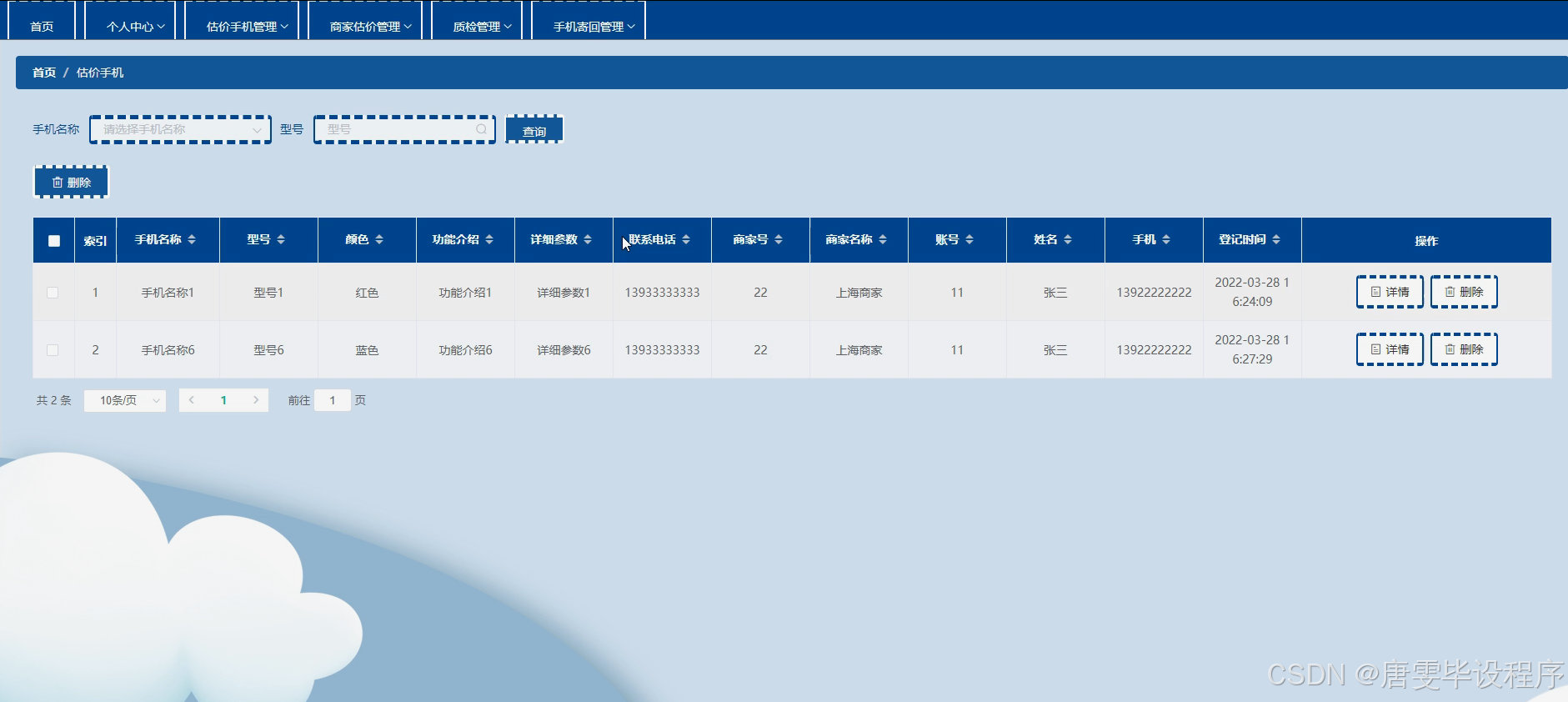 本研究将围绕二手手机回收系统的核心功能展开,具体包括:用户模块,用于用户注册、登录及个人信息管理;商家模块,供商家发布回收政策、查看待估价手机列表;估价手机功能,允许用户上传手机型号、配置、成色等信息,系统自动生成初步估价;手机信息展示,确保所有上传的手机信息准确无误,便于商家与用户查阅;商家估价环节,商家根据手机实际情况调整估价,并提供最终报价;质检模块,用于手机到达后,商家进行专业检测,记录检测结果;手机寄回流程,对于不符合预期或用户拒绝回收的手机,提供安全便捷的寄回服务。通过这些功能的集成与优化,确保系统能够满足用户与商家的多元化需求,实现二手手机回收的高效运作。