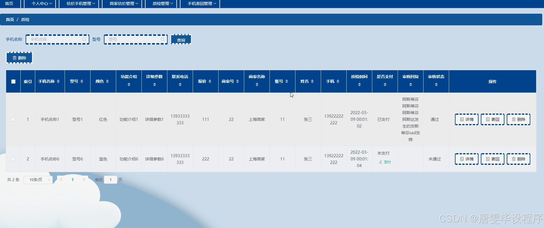 本研究旨在设计并实现一个功能完善的二手手机回收系统,旨在为用户提供便捷的手机回收服务,同时为商家提供一个高效、透明的估价与质检平台。通过该系统,用户能够轻松上传手机信息,获取即时估价,并完成手机寄送与回收的全过程;商家则能根据系统提供的详细手机信息,进行准确估价与质检,确保回收手机的质量与价值。最终,通过优化回收流程,提升回收效率,促进二手手机市场的健康发展。