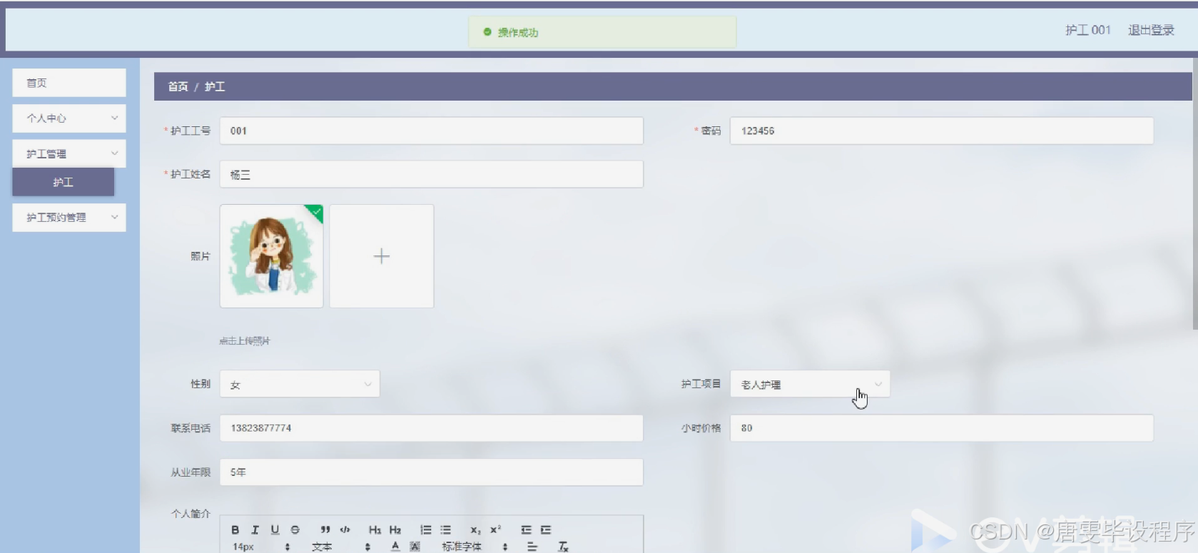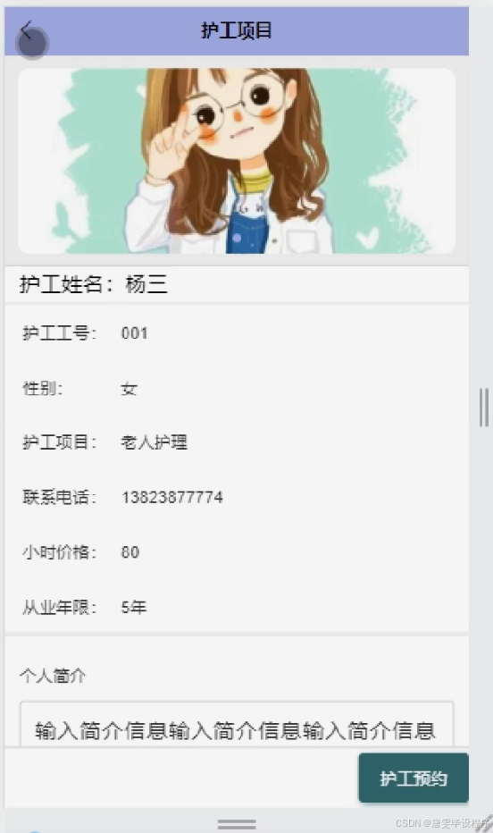随着人口老龄化的加剧,社会对护理服务的需求日益增长。传统的家庭护理模式已难以满足当前老年人及特殊群体的多样化需求。护工项目作为一种专业的、系统化的服务模式,应运而生并逐渐发展成为解决这一社会问题的关键途径。当前市场上,护工服务的质量参差不齐,缺乏有效的管理和监管机制。因此,开发一个集用户管理、护工管理、护工预约及护工项目管理于一体的综合性护工服务平台,对于提升服务质量、优化资源配置、保障用户权益具有重要意义。