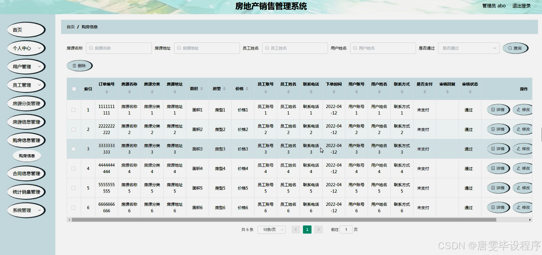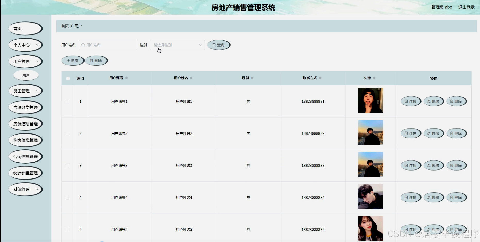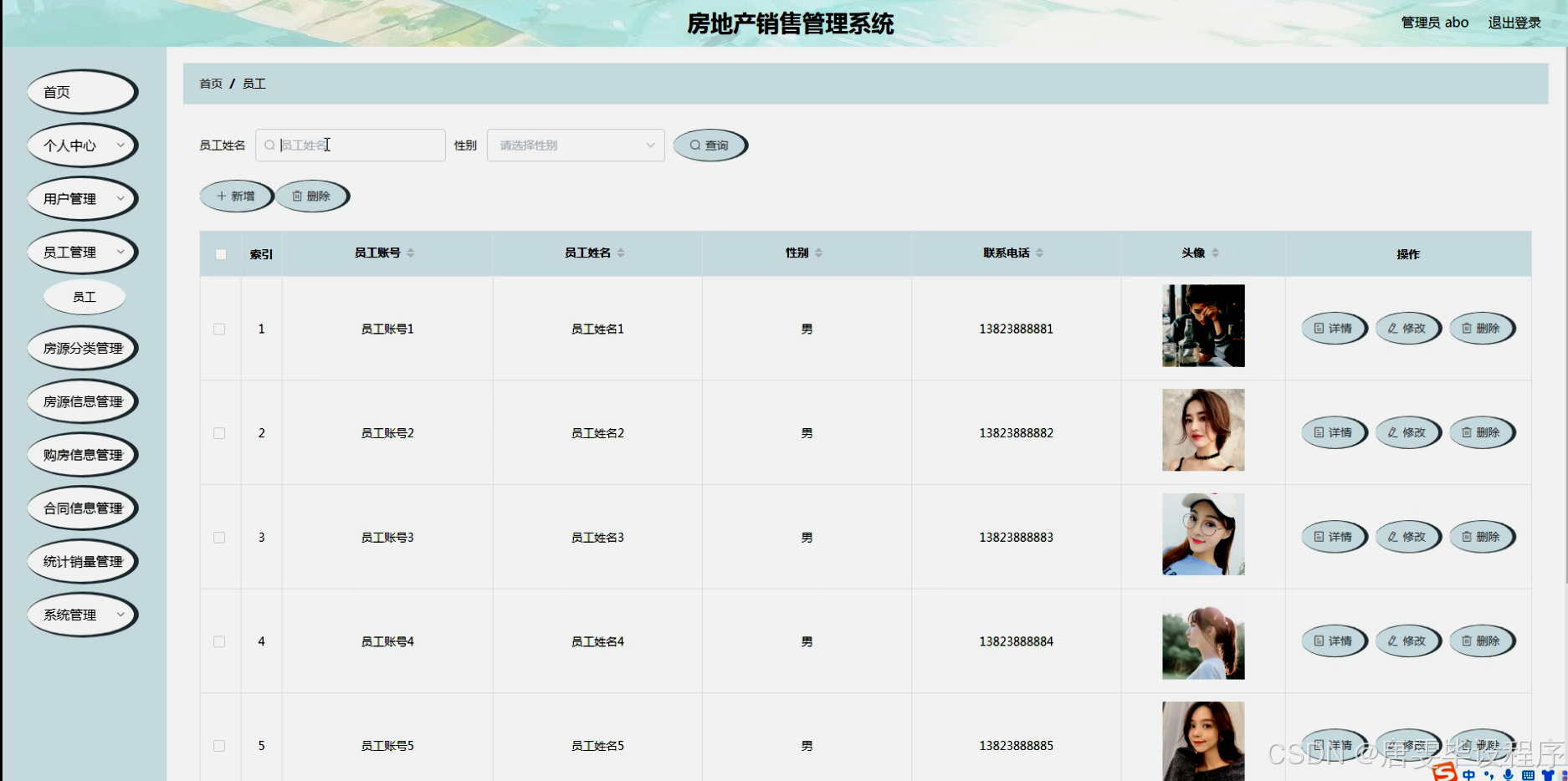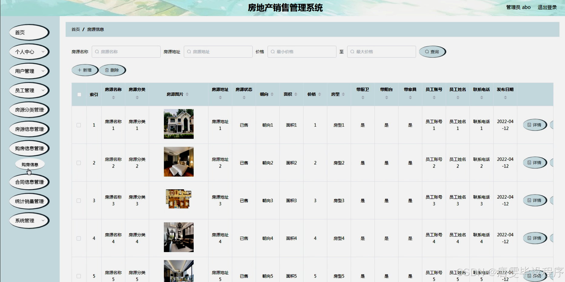 本研究旨在设计并实现一套功能完善、操作简便的房地产销售管理系统,以解决当前房地产企业在销售管理过程中遇到的实际问题。通过整合用户管理、员工管理、房源分类、房源信息管理、购房信息管理、合同信息管理以及销量统计等核心功能,实现销售流程的数字化和智能化,提升企业的整体管理水平和市场竞争力,为企业的可持续发展奠定坚实的基础。