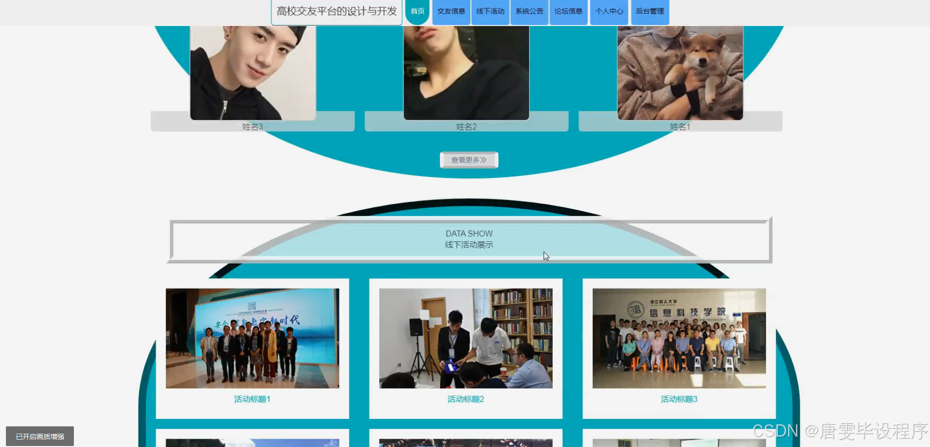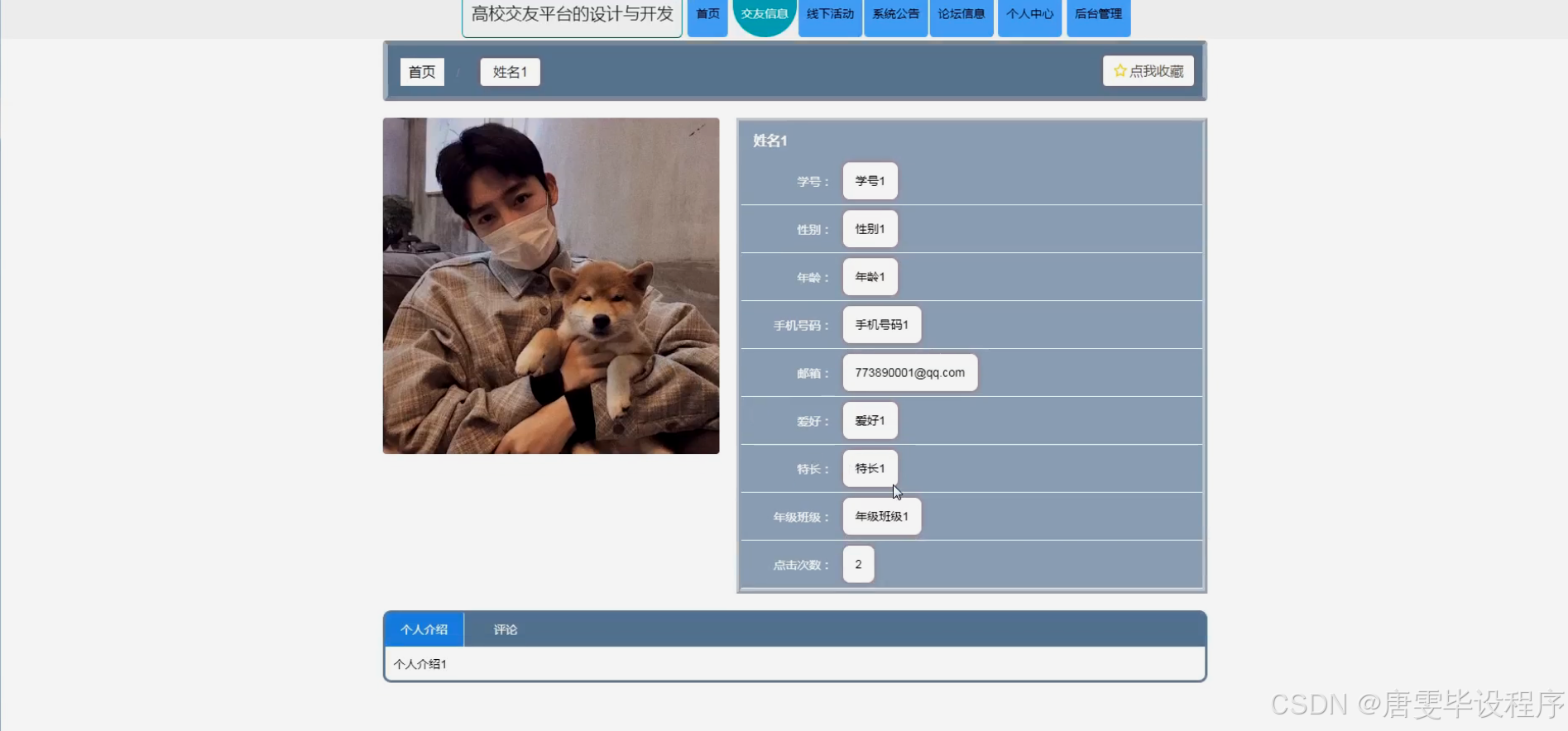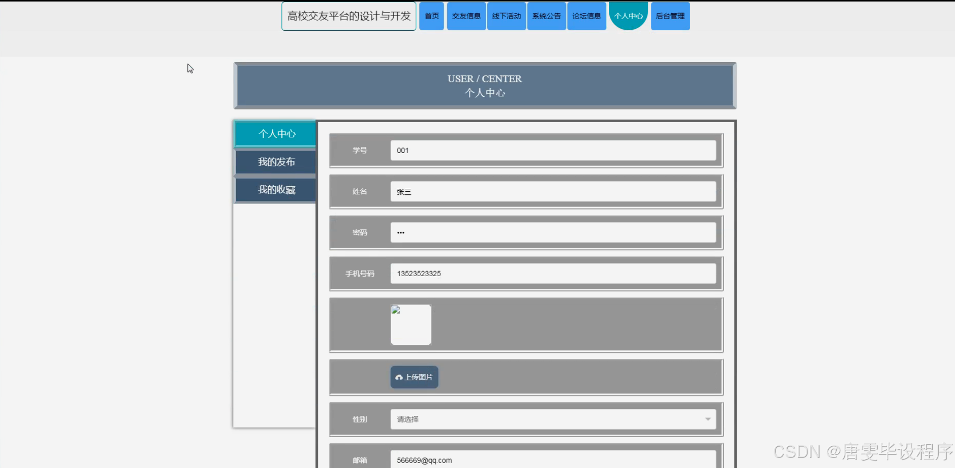 高校交友平台的设计与开发不仅有助于丰富大学生的校园生活,提升他们的社交能力,还能在一定程度上缓解因学业压力而产生的孤独感和焦虑情绪。通过该平台,学生可以轻松结识志同道合的朋友,共同参加各类兴趣小组和线下活动,拓宽视野,增进友谊。此外,该平台的推广使用还能促进校园文化的多元化发展,营造积极向上的校园氛围,为高校学生的全面发展提供有力支持。