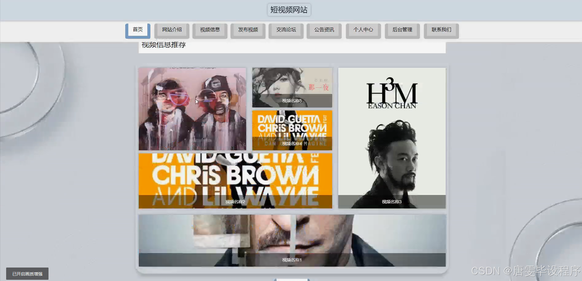 本研究的主要目的是设计并开发一个功能完善的短视频网站,以满足用户多样化的需求。通过深入分析用户需求和市场趋势,本研究旨在构建一个集用户管理、网站介绍、视频类型分类、视频信息展示以及视频发布等功能于一体的综合性平台。该平台将注重用户体验,提供流畅的视频播放、便捷的互动功能和个性化的推荐服务,旨在打造一个用户友好、内容丰富、互动性强的短视频社区。