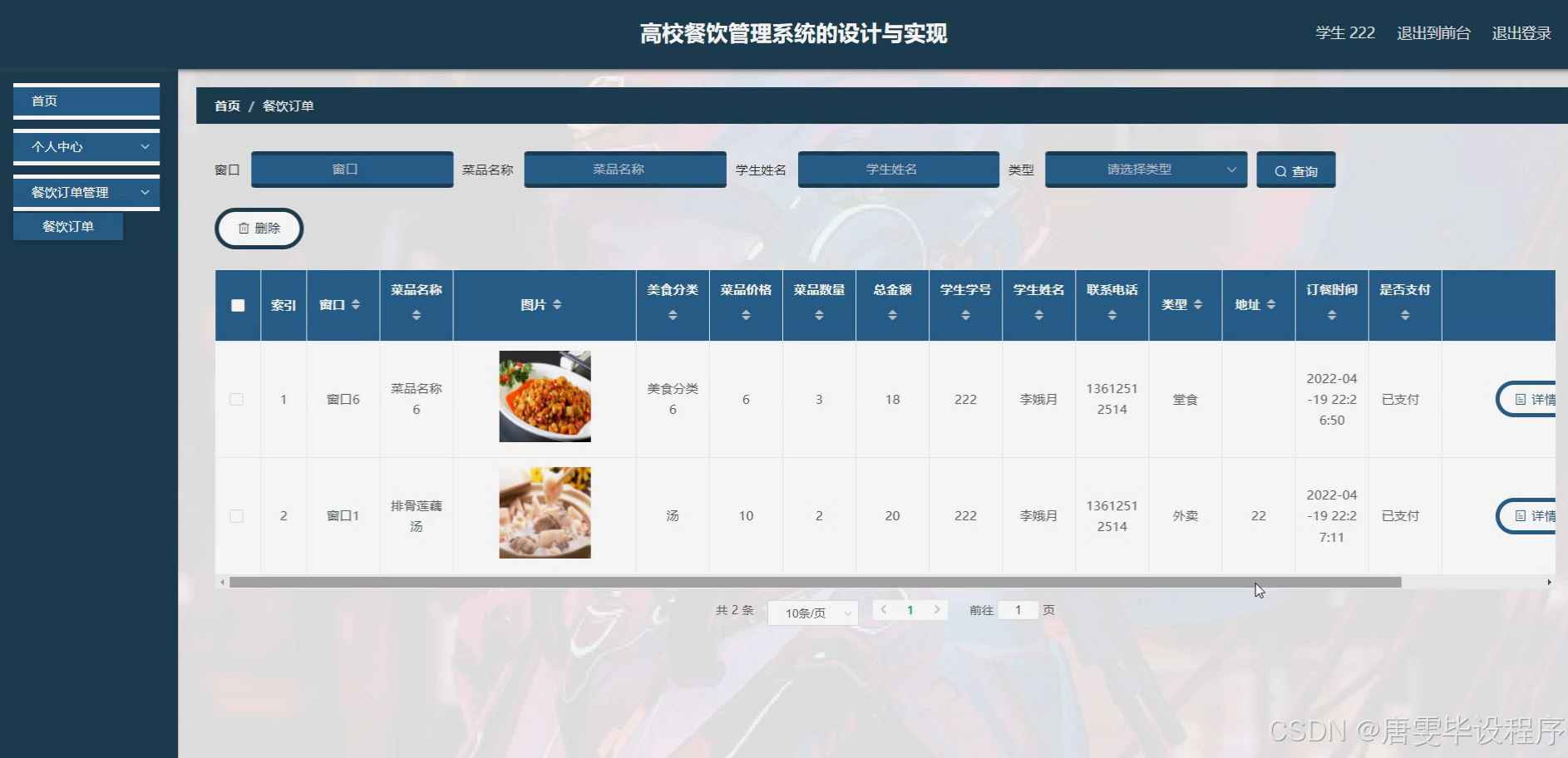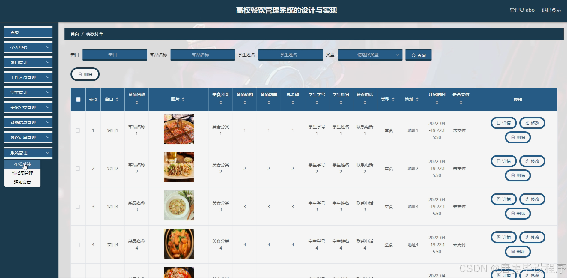 本研究旨在设计并实现一套功能完善、操作便捷的高校餐饮管理系统,以满足师生多元化、个性化的餐饮服务需求。通过集成工作人员管理、学生信息管理、窗口名称设置、菜品信息展示与库存管理等功能模块,实现餐饮管理的全面信息化。该系统旨在提高餐饮服务的响应速度与质量,降低运营成本,提升师生满意度,为高校后勤管理现代化提供有力支撑。