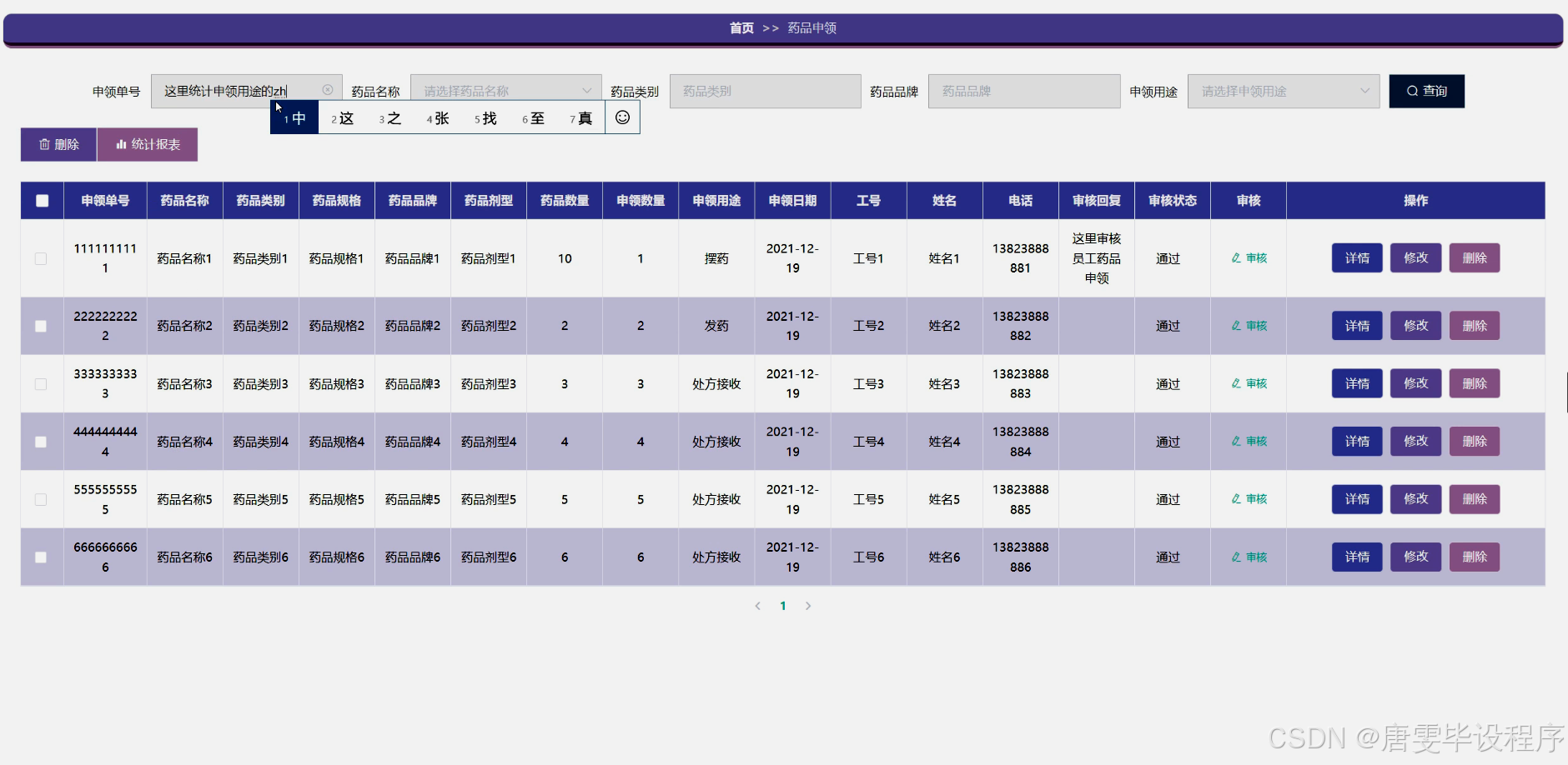 本研究旨在设计并实现一套功能全面的药房药品管理系统,以提升药房管理的智能化水平。该系统需涵盖员工信息管理、药品类别划分、详细药品信息录入、药品申领流程管理、库存盘点自动化、入库与出库记录的精准追踪等核心功能。通过这些功能,旨在实现药品管理的透明化、高效化,确保药品流通的每一个环节都能得到严格把控,最终提升医疗机构的整体服务质量和患者满意度。