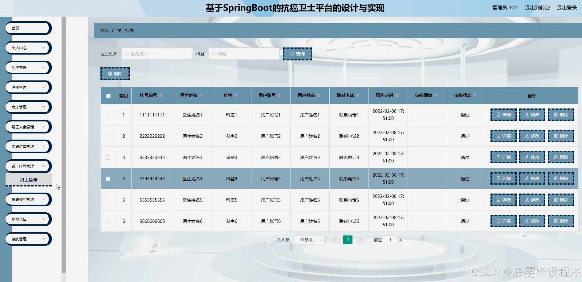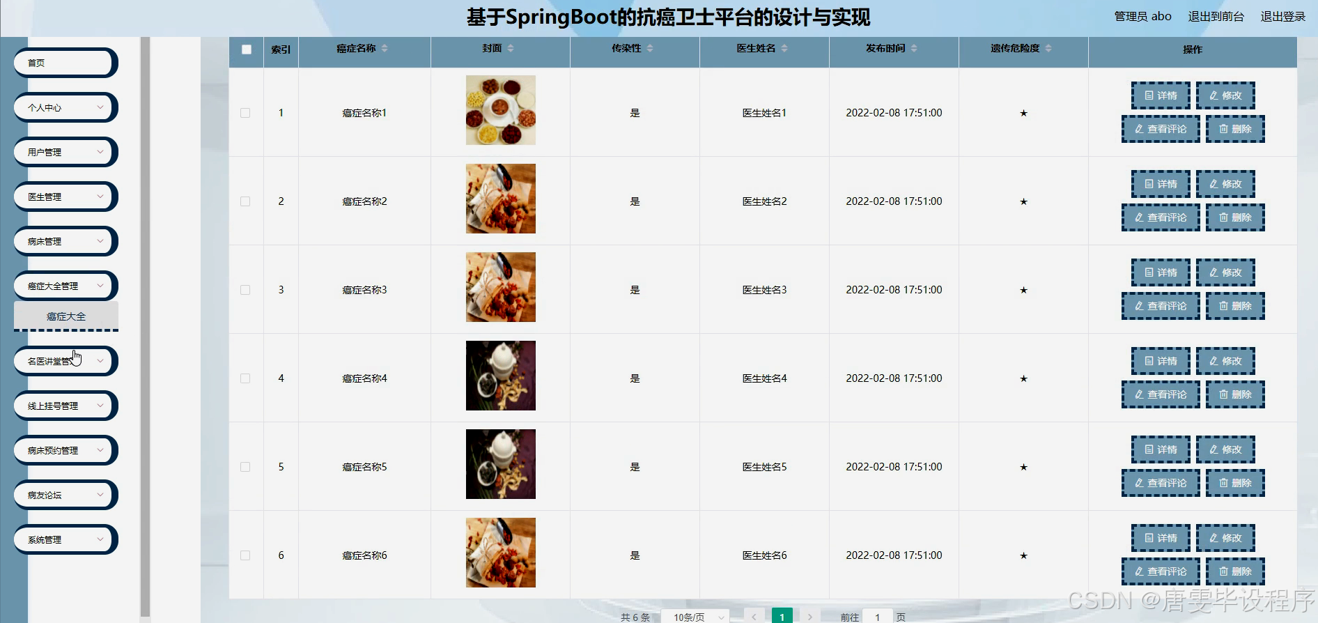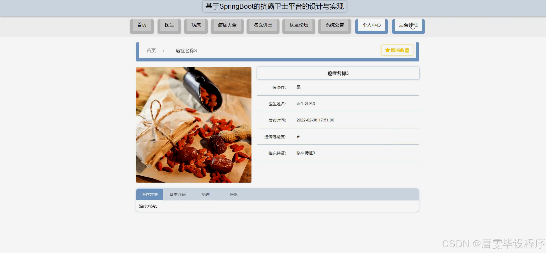 随着全球癌症发病率的逐年上升,抗癌治疗已成为医学领域的重要课题。面对庞大的癌症患者群体,传统的医疗服务模式在资源分配、信息共享及患者教育等方面存在诸多不足。抗癌卫士平台的设计,旨在利用现代信息技术手段,整合医疗资源,提升医疗服务效率与质量。该平台通过构建一个集患者管理、医生咨询、病床预约、癌症知识普及等功能于一体的综合性服务系统,为患者提供便捷、高效的抗癌支持服务,同时也为医生提供一个高效的工作平台,促进医患之间的有效沟通与合作。