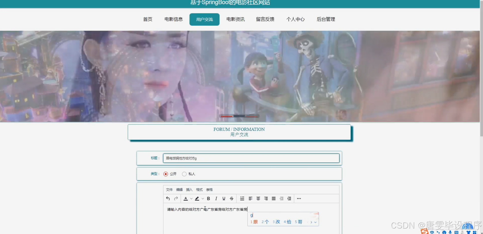 本研究旨在通过开发一个电影社区网站,为电影爱好者提供一个便捷、高效的信息获取渠道和交流平台。该网站不仅能够提供详尽的电影信息,如剧情简介、演员阵容、上映时间等,还能通过用户评价、观影心得分享等功能,增强用户之间的互动与粘性。此外,通过智能推荐系统,网站能够为用户提供个性化的观影建议,提升用户的观影体验。因此,本研究对于促进电影文化的传播、增强社区凝聚力以及推动互联网文化产业的创新与发展具有重要意义。