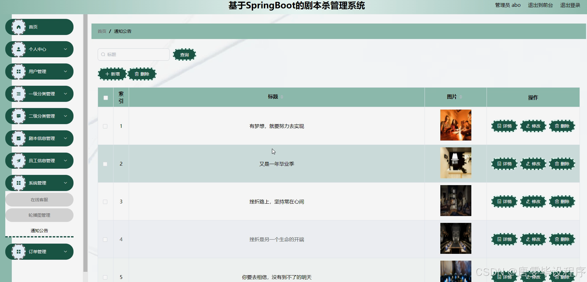 本研究的主要目的是设计并实现一套功能完善的剧本杀管理系统,以满足剧本杀店铺日常运营的需求。通过该系统,店铺能够高效管理用户信息、剧本资源、员工档案等关键数据,实现预约管理、剧本分类、员工调度等功能的自动化和智能化。同时,系统还将提供数据分析功能,为管理者提供决策支持,助力店铺提升运营效率和盈利能力。