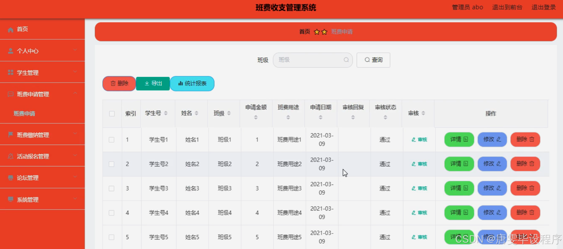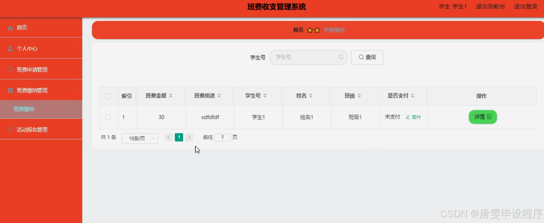 本项目的核心目的在于设计并实现一套功能完善的班费收支管理系统,以满足班级日常财务管理的需求。通过该系统,学生可以方便快捷地参与班费缴纳、活动报名等流程,班干部则能高效处理班费申请、审批及收支记录等工作。最终,期望通过该系统的应用,实现班级财务管理的规范化、信息化,为班级活动的顺利开展提供有力保障。