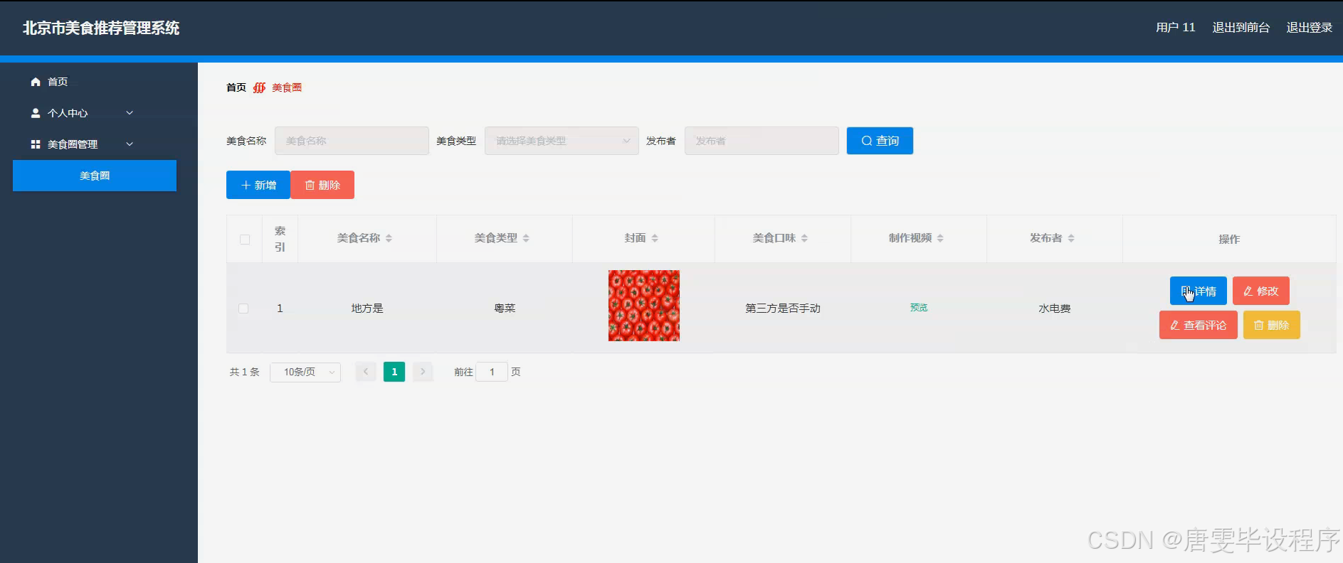 本研究不仅有助于提升北京市美食文化的传播力和影响力,还能为游客和本地居民提供更加贴心、个性化的美食体验。通过构建一个集美食信息展示、美食类型筛选、美食圈探索、美食榜排名等功能于一体的管理系统,可以有效解决美食信息碎片化、推荐不准确等问题,推动北京市美食产业的数字化升级。同时,该系统还能为餐饮商家提供一个展示自我、吸引顾客的平台,促进餐饮业的繁荣发展。
