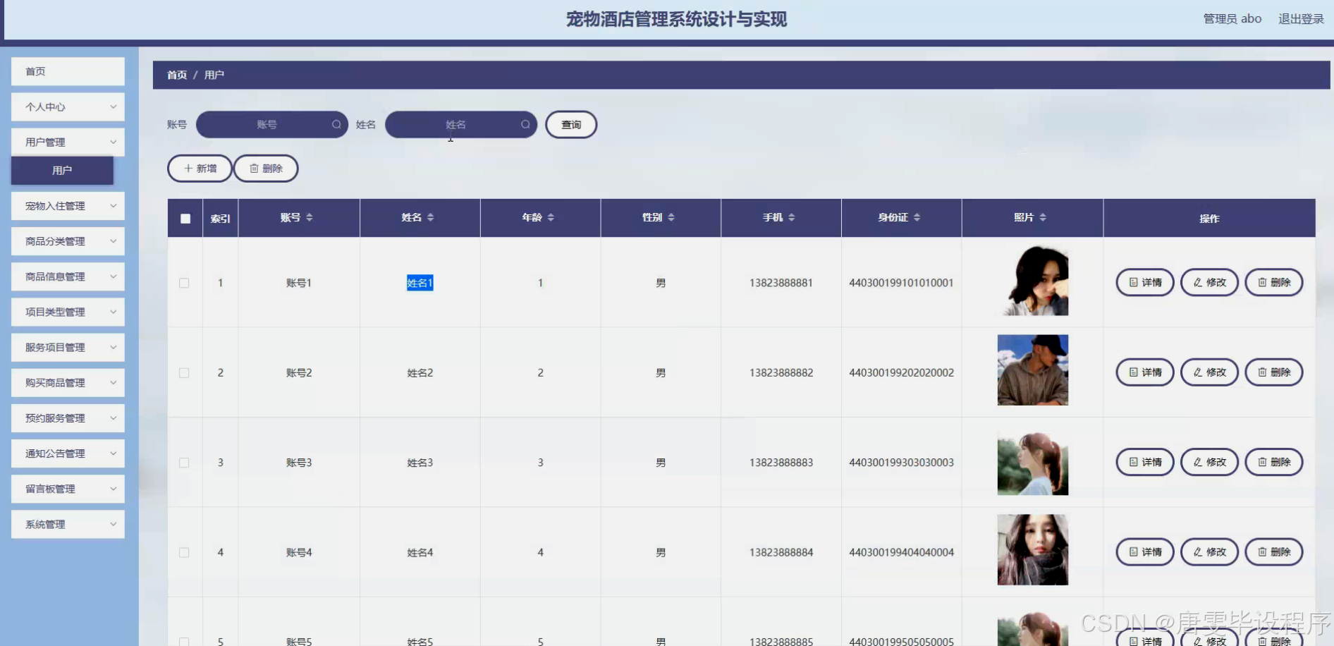 随着城市化进程的加速和生活水平的提高,宠物已成为许多家庭的重要成员。人们越来越注重宠物的生活质量,包括宠物的饮食、健康以及休闲娱乐等方面。宠物酒店作为一种新兴的服务业态,应运而生并迅速发展。宠物酒店不仅提供宠物寄养服务,还涵盖了宠物美容、健康检查、训练等多种服务项目。然而,传统的人工管理方式已难以满足宠物酒店高效、便捷、个性化服务的需求。因此,开发一套宠物酒店管理系统,实现宠物酒店业务的信息化、智能化管理,已成为行业发展的必然趋势。