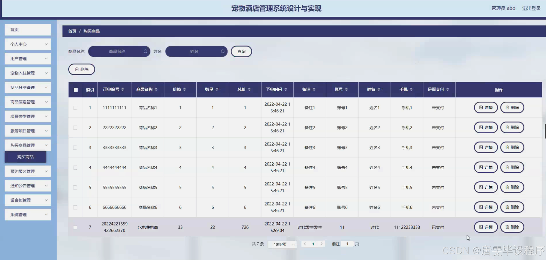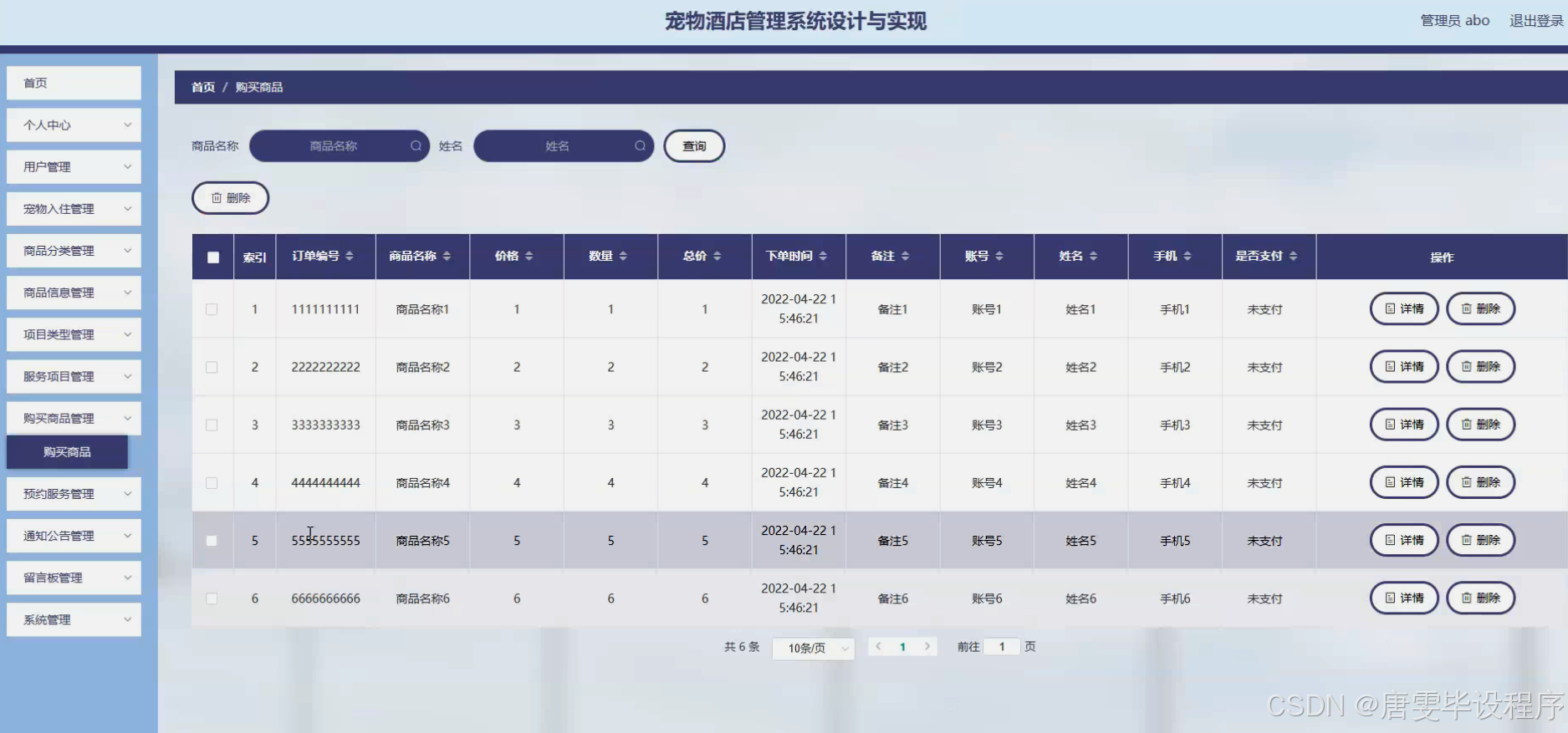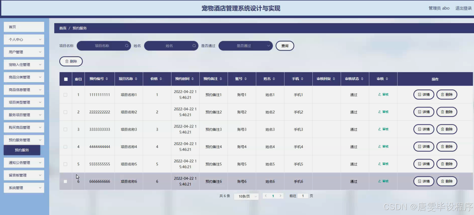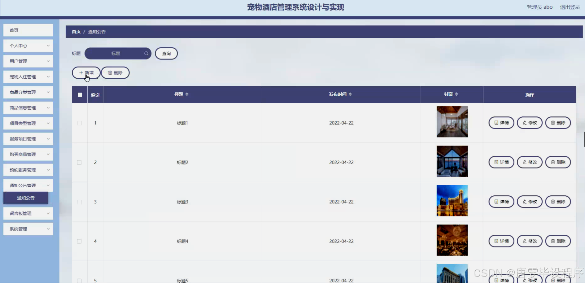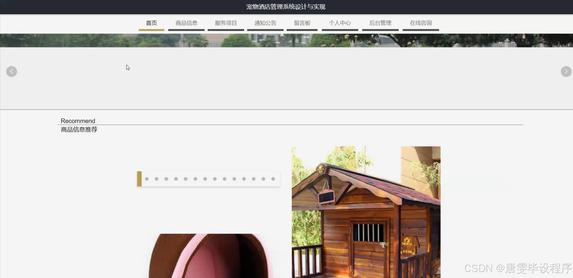 本研究旨在设计并实现一套功能完善的宠物酒店管理系统,以满足宠物酒店日常运营和管理的需求。通过该系统,用户能够方便地查看商品信息、预约服务项目、办理宠物入住手续等;管理者则能够实时掌握酒店运营情况,进行商品分类管理、项目类型设置、通知公告发布等操作。通过系统的实施,旨在提升宠物酒店的服务水平,优化客户体验,促进宠物酒店行业的健康发展。