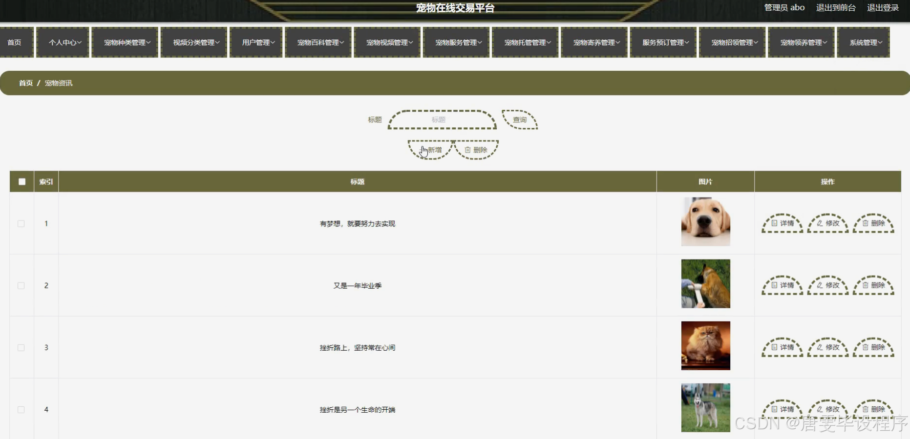 随着互联网技术的飞速发展,人们的生活方式正逐步向线上转移,电子商务已成为现代消费的重要组成部分。宠物作为人类忠实的伙伴,其相关产业近年来呈现出蓬勃发展的态势。然而,传统的宠物交易方式往往受限于地域、信息不对称等问题,难以满足消费者多样化的需求。因此,构建一个集宠物展示、交易、知识分享于一体的宠物在线交易平台显得尤为重要。该平台旨在打破地域限制,提供丰富多样的宠物种类选择,同时利用互联网的高效信息传播特性,促进宠物文化的交流与传播,满足广大宠物爱好者的需求。