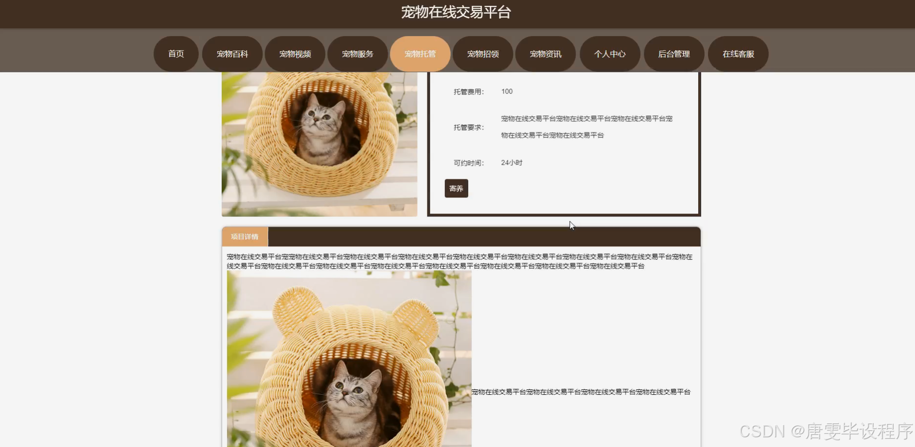 本项目的核心目的在于开发一个综合性的宠物在线交易平台,旨在为用户提供一站式宠物选购、养护学习及社区交流服务。通过该平台,用户可以轻松浏览并比较不同种类的宠物及其相关商品,享受视频介绍带来的直观感受,同时获取权威的宠物百科知识,提升宠物养护技能。商家则能拓宽销售渠道,增加曝光率,实现商业价值的最大化。最终,平台将促进宠物行业的健康发展,推动宠物文化的普及与深化。