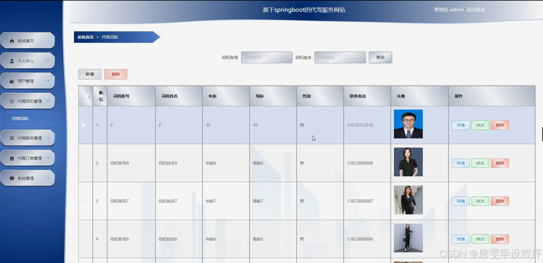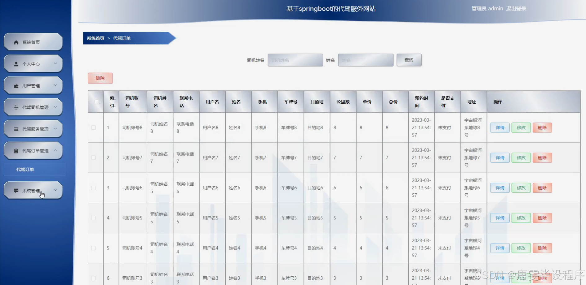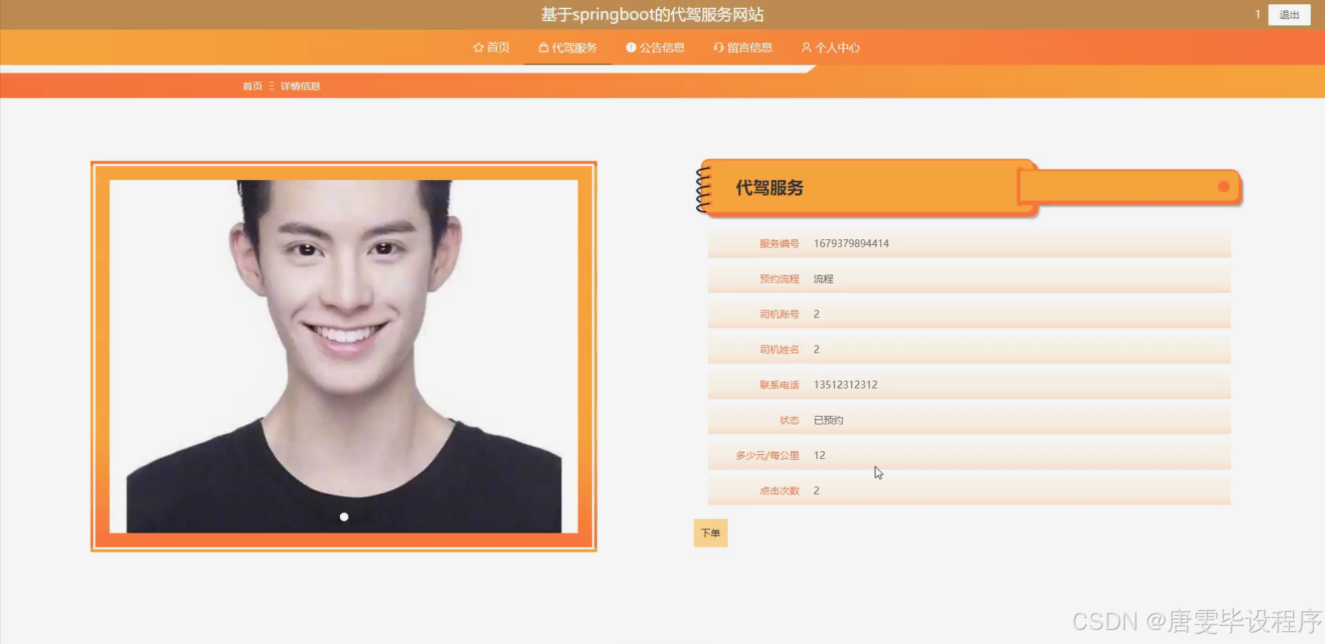 代驾服务系统包含六大核心功能模块: