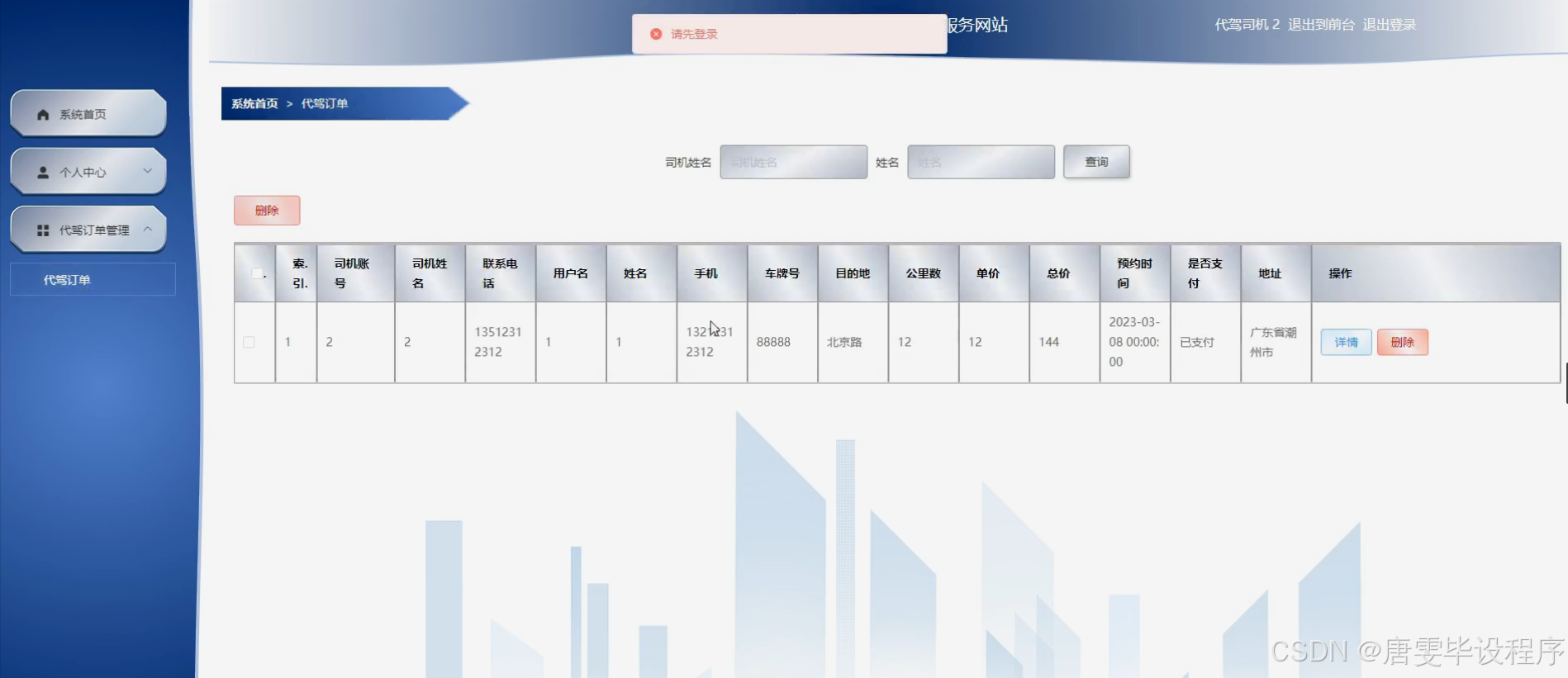 本研究旨在设计一套覆盖用户、司机、服务全流程的代驾服务系统,解决行业现存的服务效率、安全监管与用户体验问题。通过功能模块开发与实证分析,验证智能派单、路径规划、服务追溯等核心技术的实际应用效果,为代驾行业数字化转型提供可推广的解决方案。