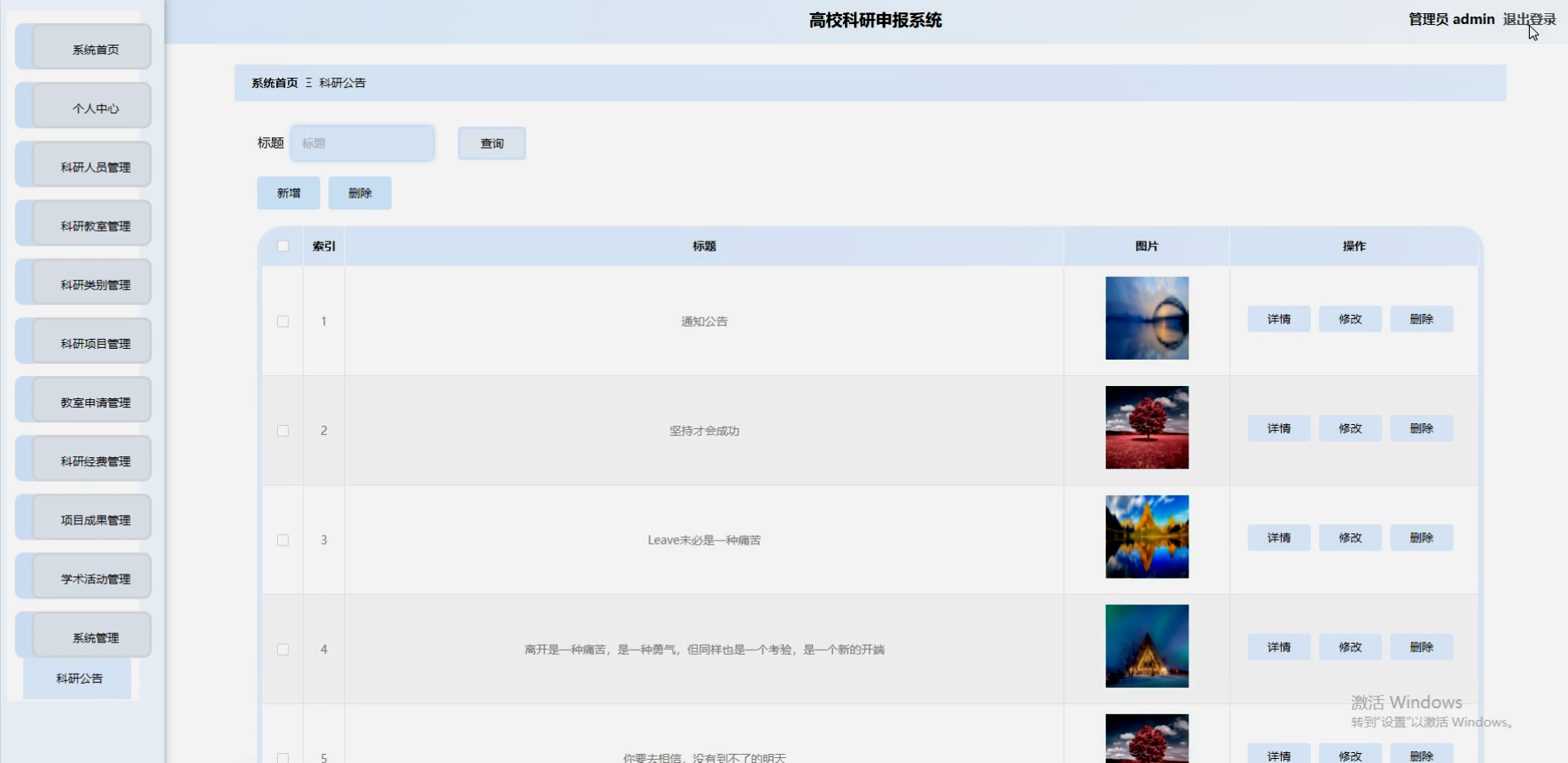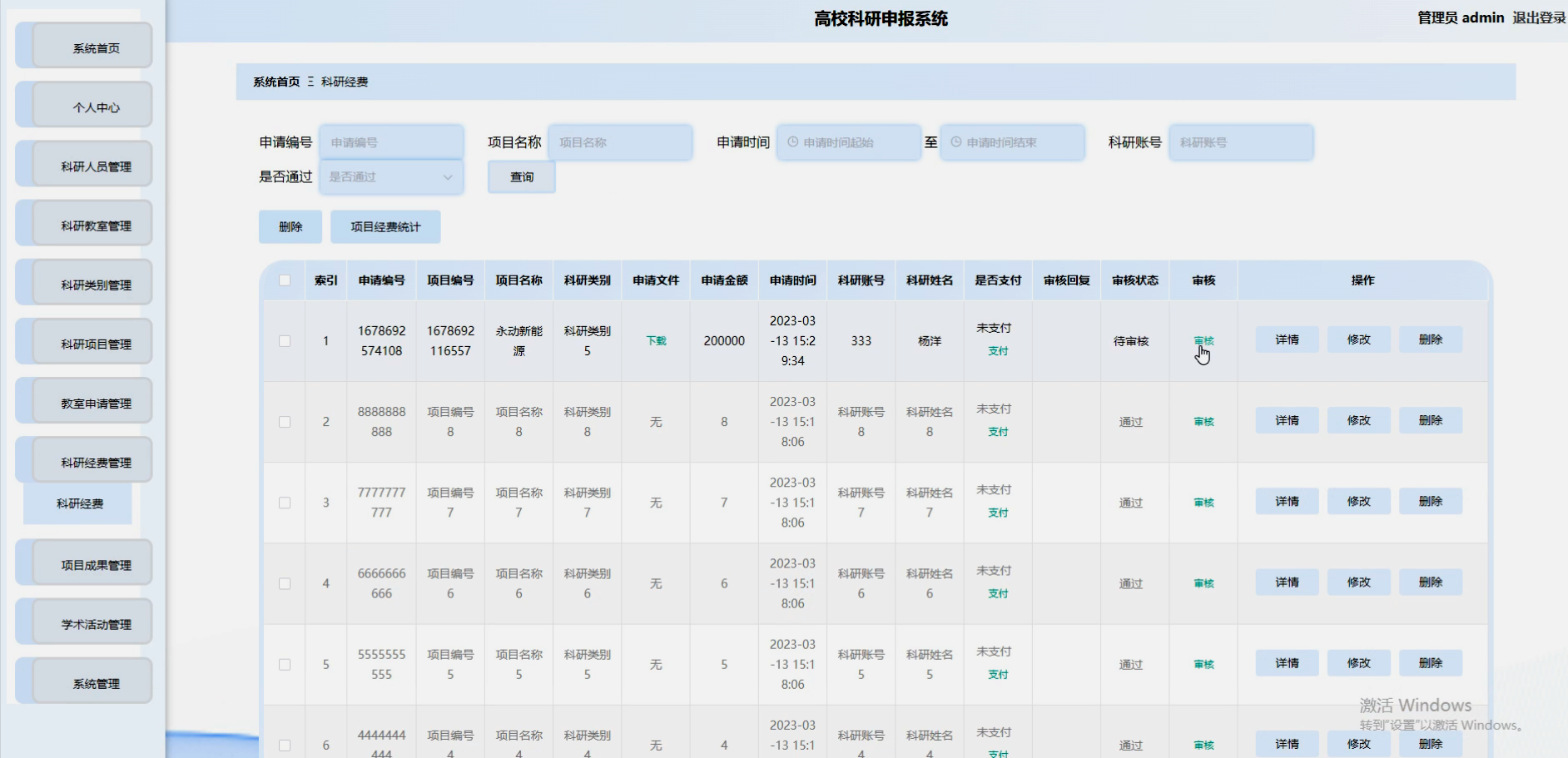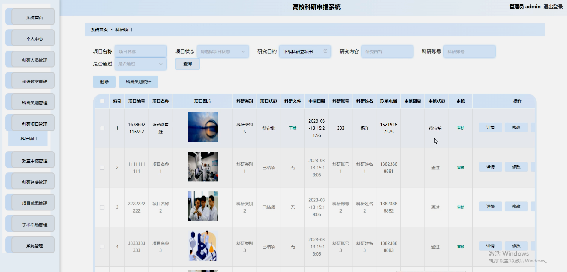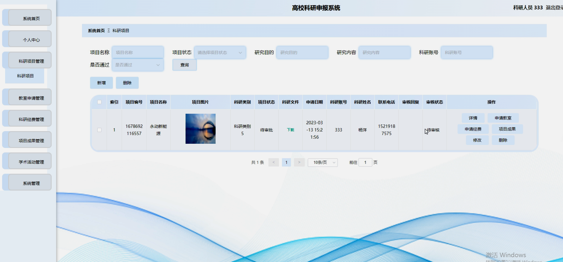 - 数据统计与分析:生成各类科研报表,为资源配置、绩效评价提供数据支持。
