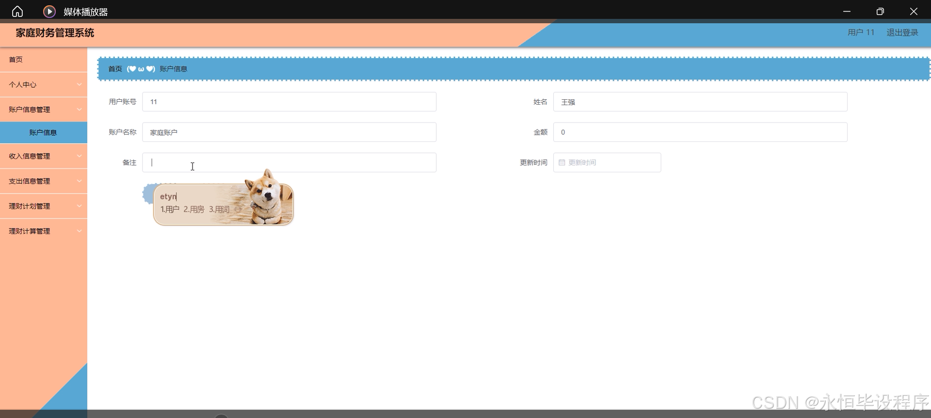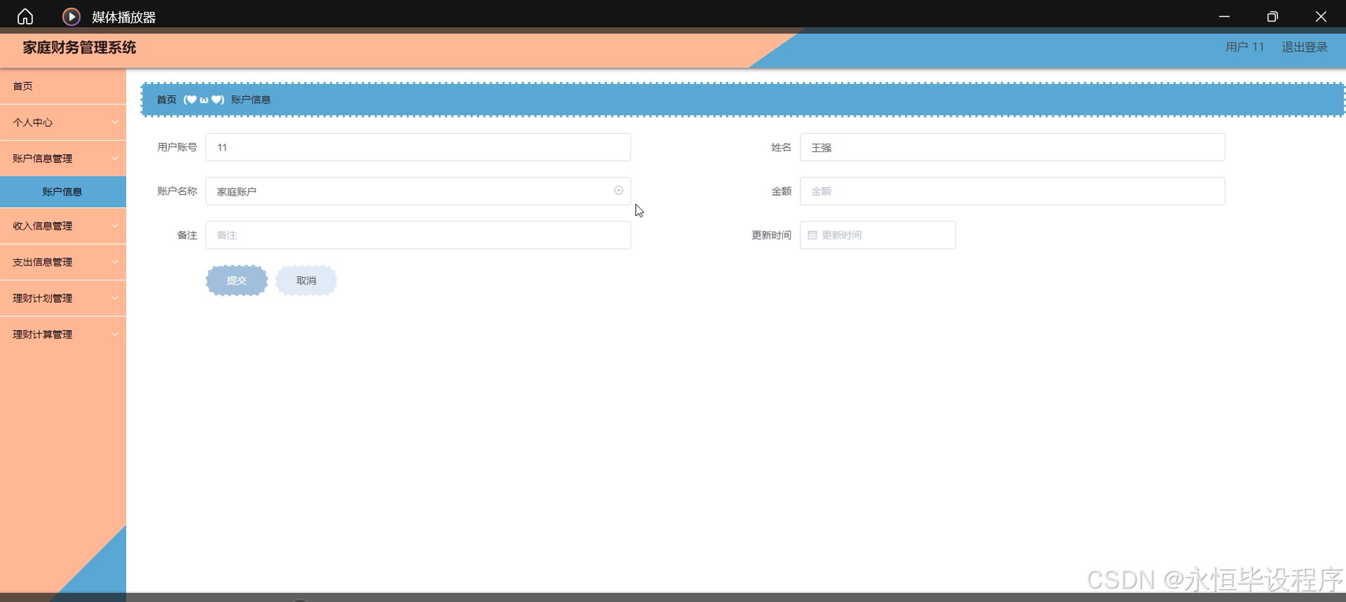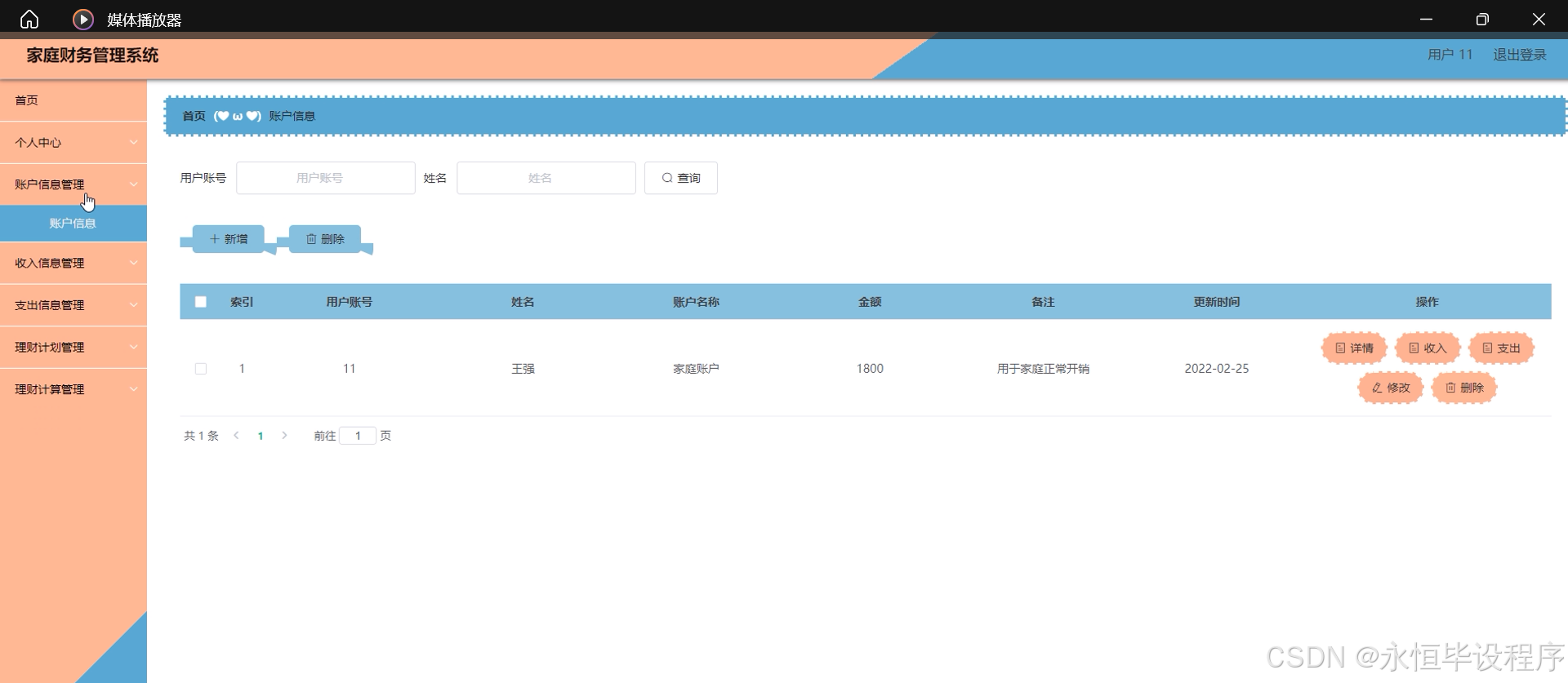 - 账户信息模块:支持家庭成员账户的创建、管理以及账户余额的实时更新,方便用户随时查看家庭财务状况。